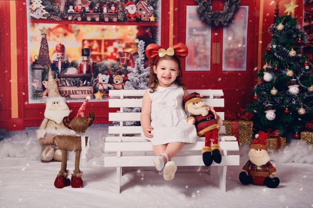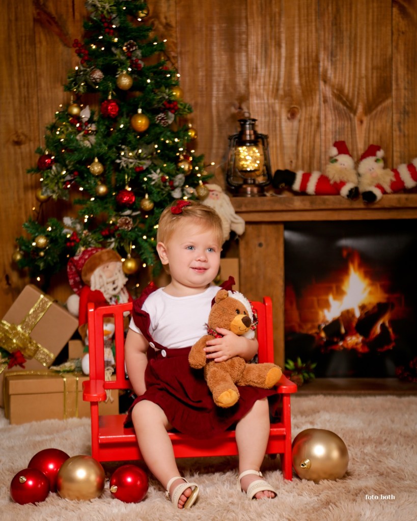 A pequena Lídia Cardoso curte o clima de Natal no estúdio de Analu Arnold e Ivan Oscar