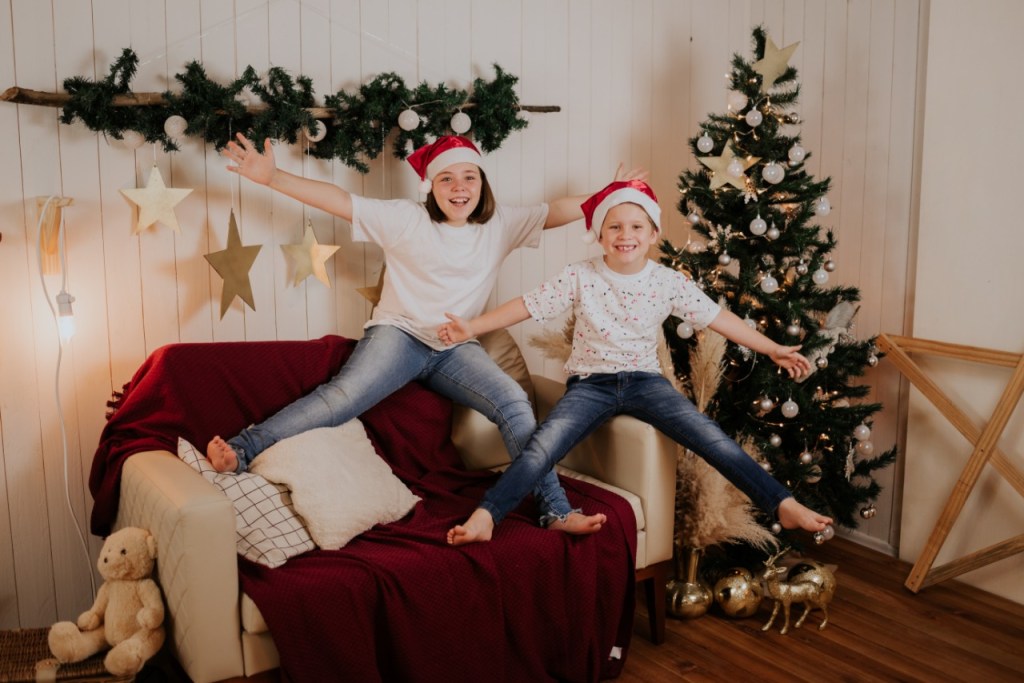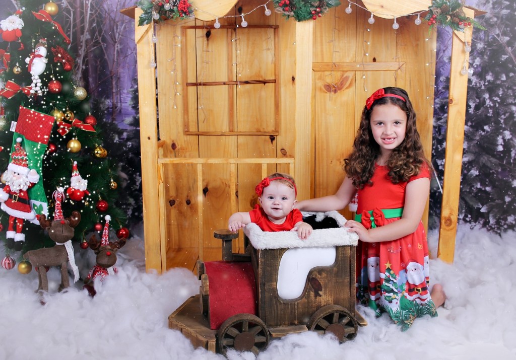 As irmãs Yasmin e Amanda Crippa à espera do Papai Noel no estúdio de Vivi Mello Fotografia
