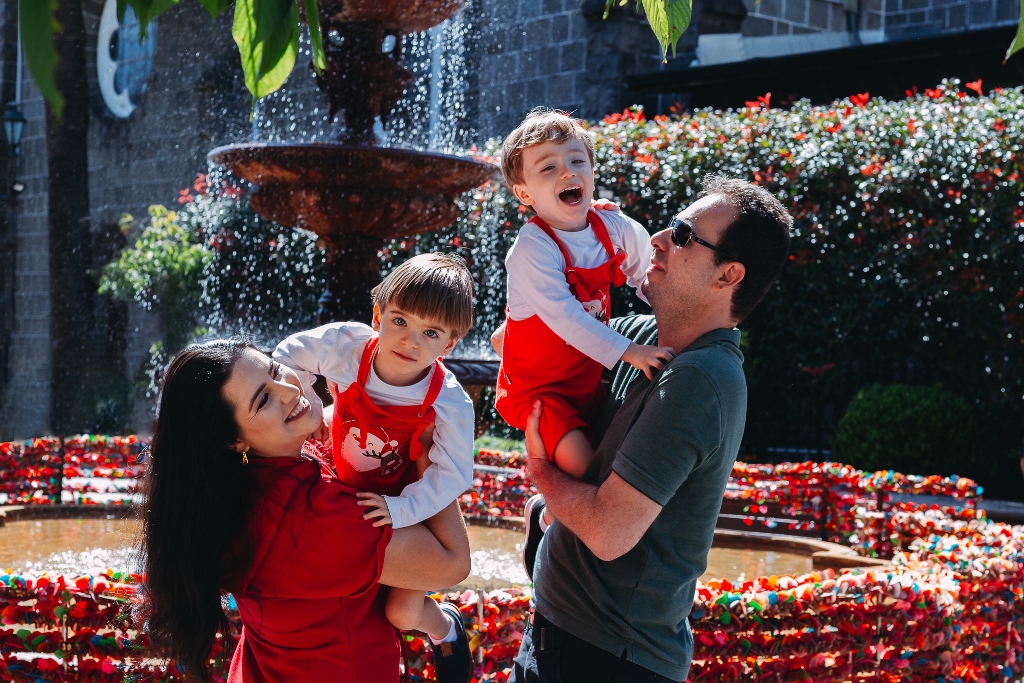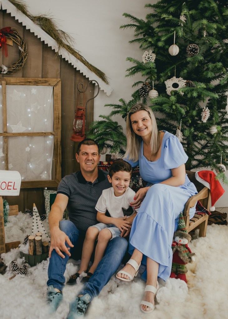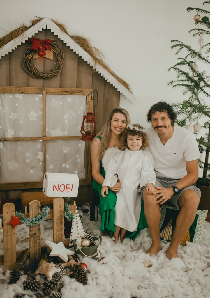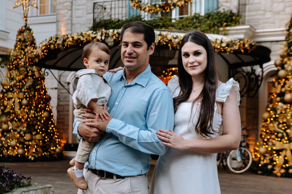 Dayane Hamed, Lucas Hamed e o pequeno Levi Hamed celebrando a chegada do Natal no Colline de France, em Gramado. Foto: Kätlin Fotografias
