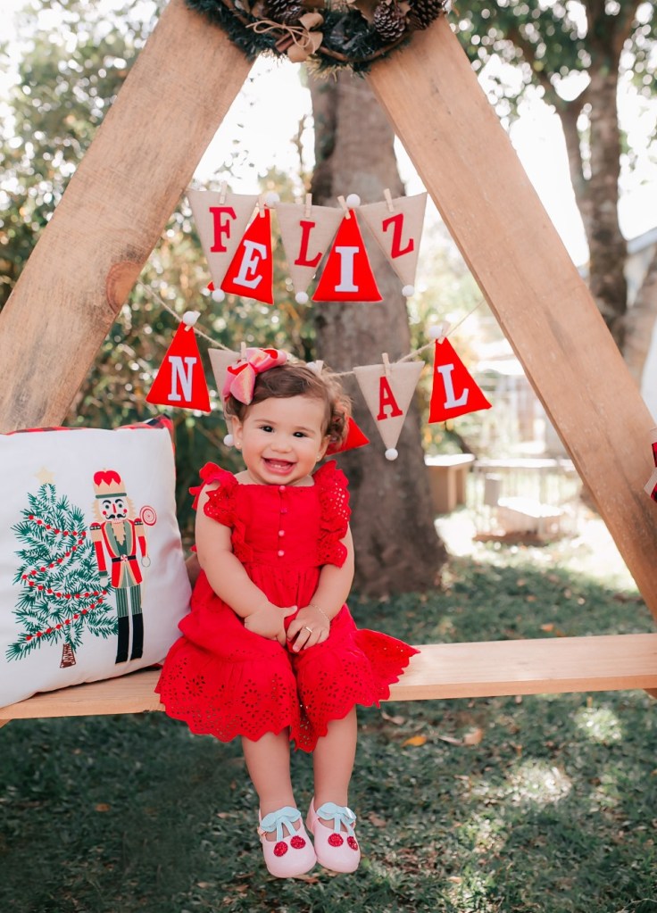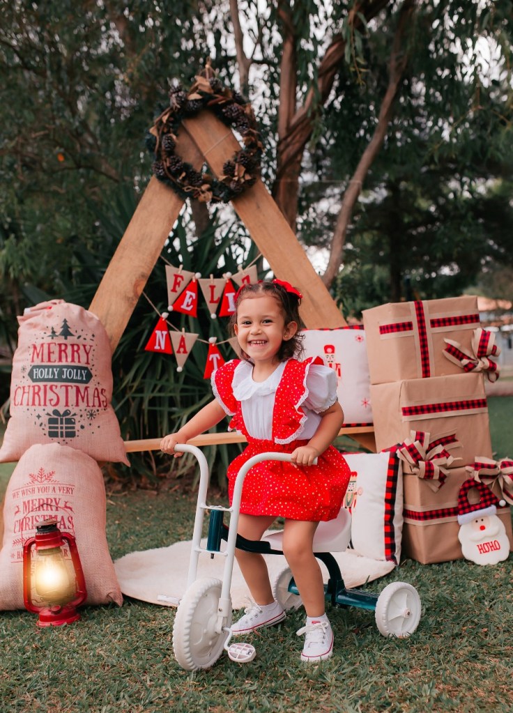 Luíza Schmitz toda feliz esperando o Natal. O clique é de Vivi Mello Fotografia