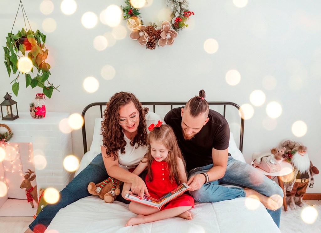 Joaquim Schmitt na expectativa pelo Natal junto com os papais Paloma e Alisson. Foto: Bem Te Vi Fotografia