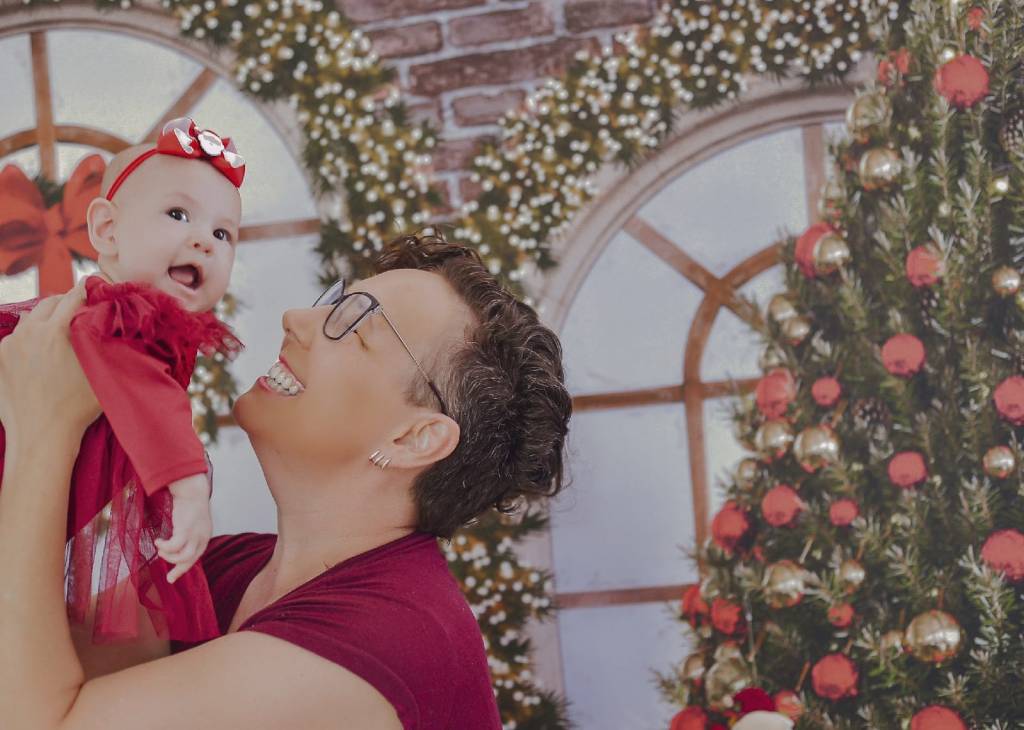 A mamãe Liziane Klein celebra o primeiro natal da pequena Manu. Foto: Alice Lindorfer Fotografia
