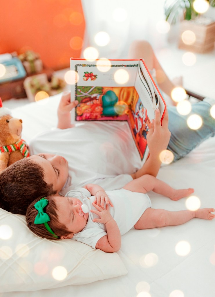 A baby Beatriz Garcez de Farias aprendendo sobre o Natal com o mano Bernardo Rafael Garcez em clique de Paty Amaral