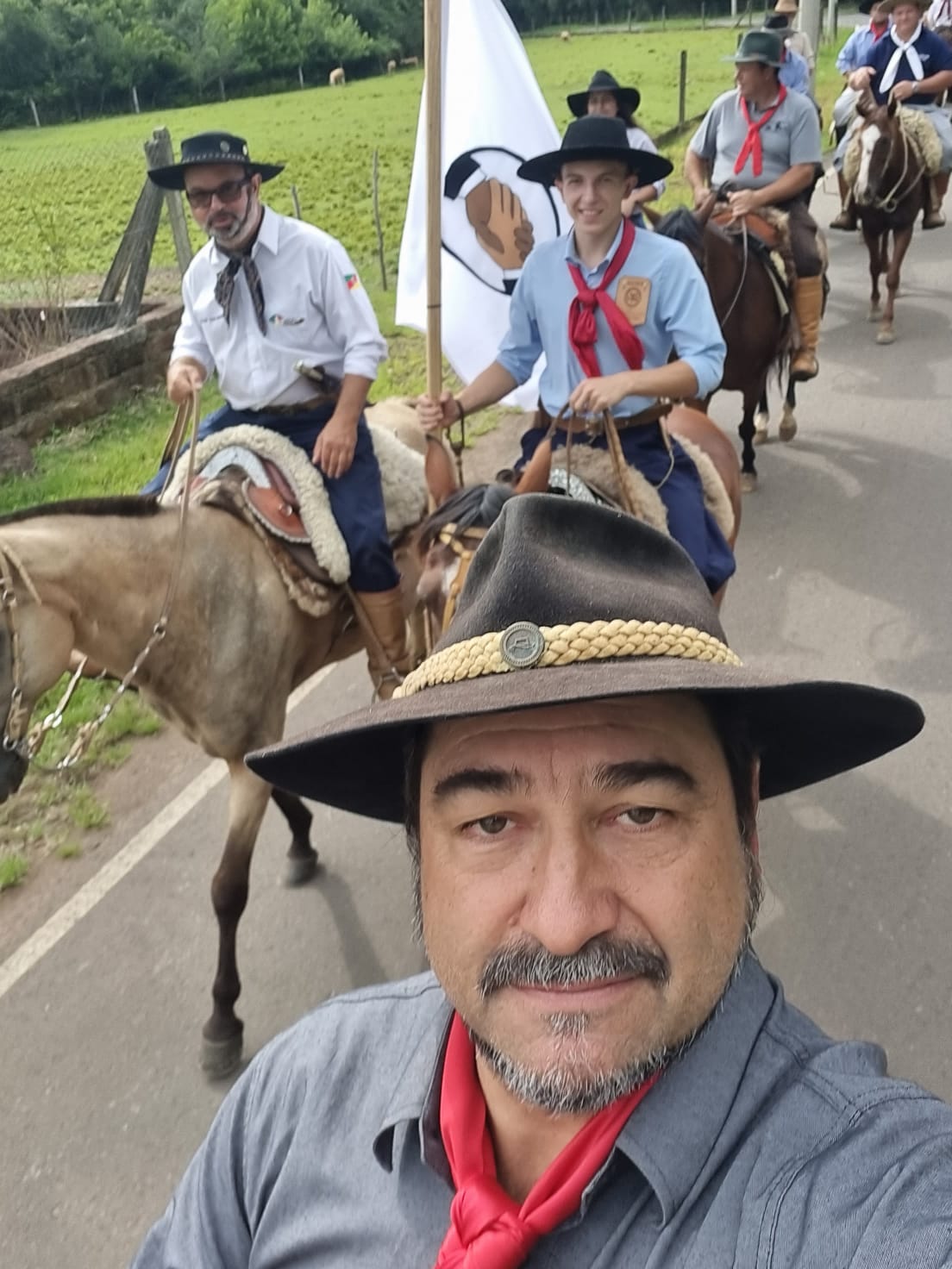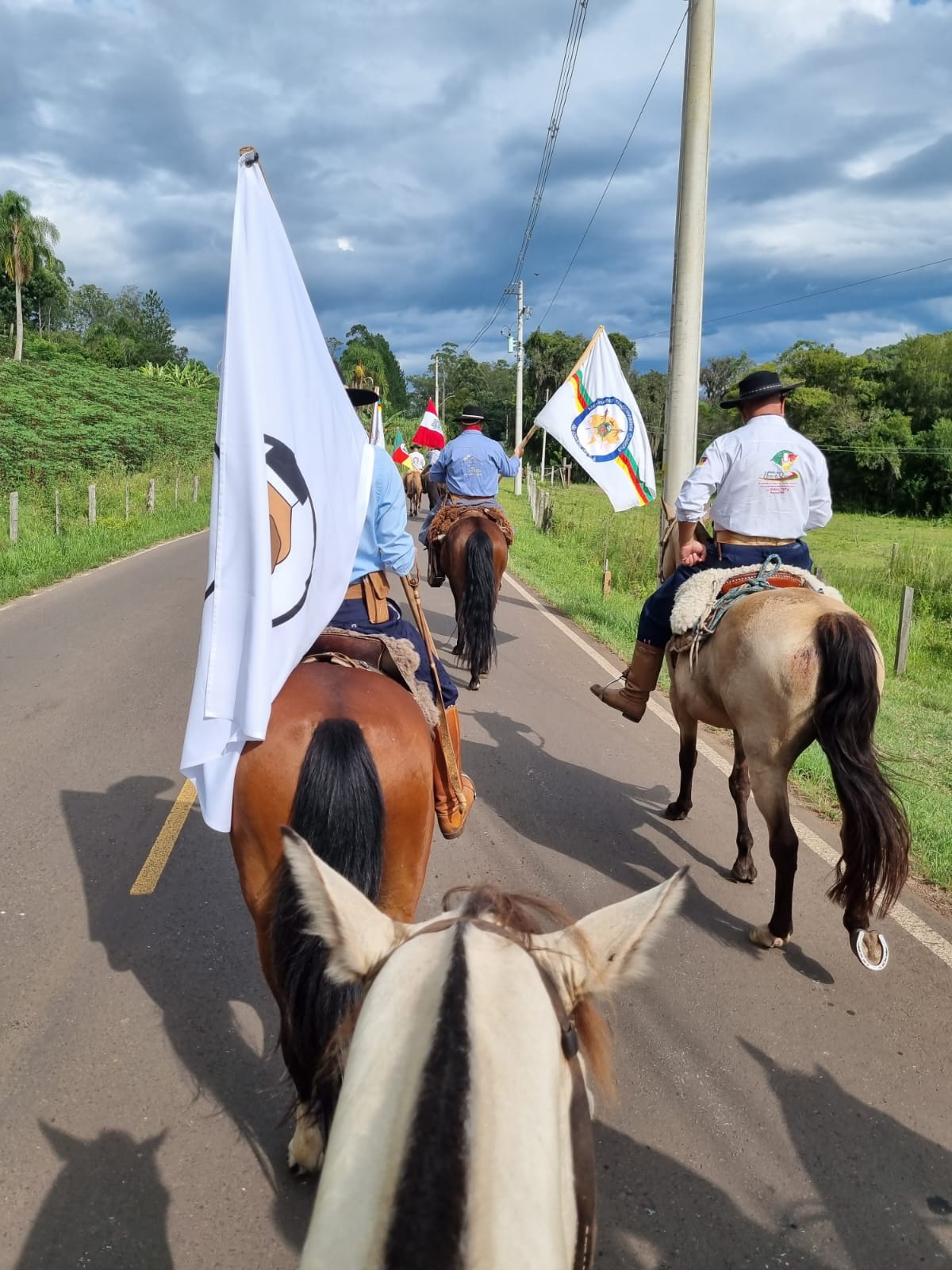 Alusivo à Semana da Paz e ao aniversário de 41 anos do CTG Passo dos Tropeiros, um grupo de cavaleiros da 22ª Região Tradicionalista realizou a Cavalgada da Paz e a Cavalgada de Aniversário. A atividade foi realizada no último sábado (25), com saída dos tradicionalistas da localidade de Rolantinho até a sede do CTG Passo dos Tropeiros, em Rolante. A bandeira da Paz foi conduzida durante o percurso pelo Peão Farroupilha da 22ªRT, Henrique Nogueira. “Foi um momento muito importante para todos”, destaca a coordenadora da região, Carla Behs.