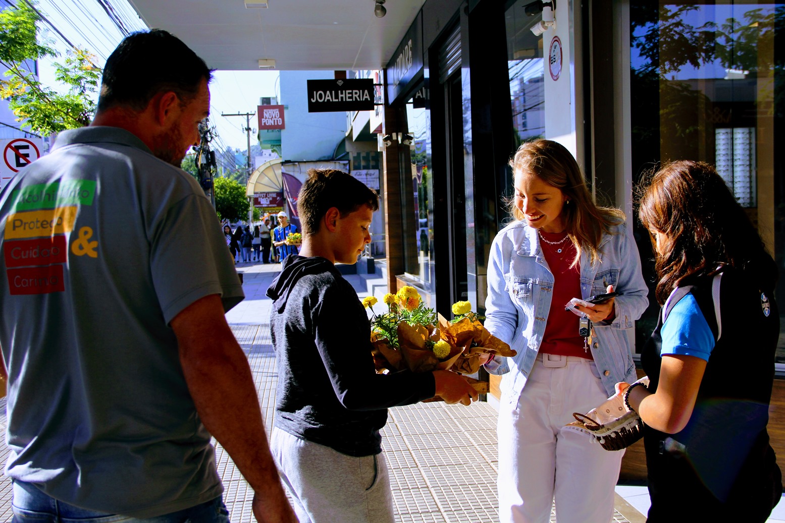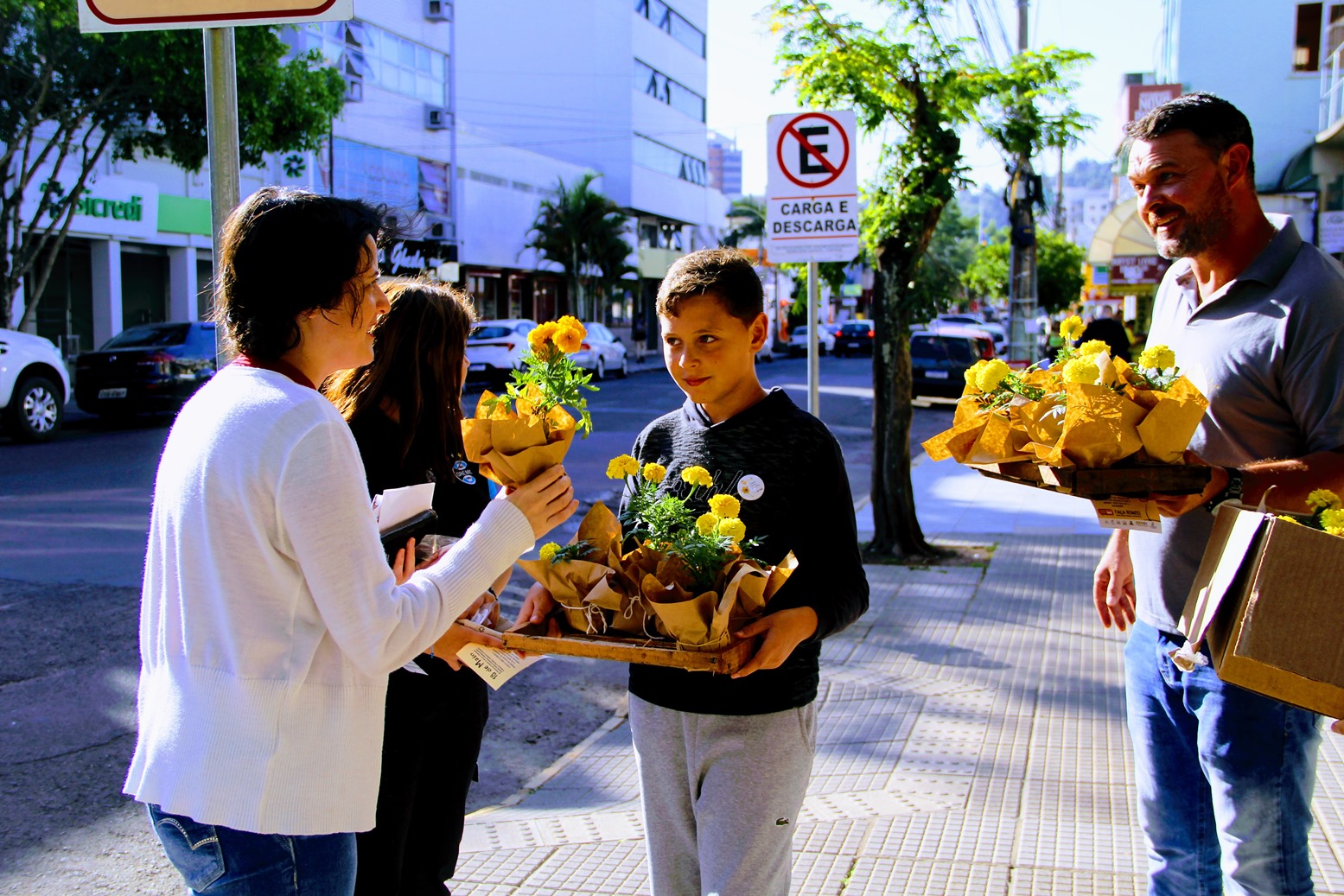 Durante o momento, crianças e adolescentes que integram a Ong Vida Breve envolveram a comunidade em um flash mob promovido na Rua Júlio de Castilhos. Logo após, representantes do Lar Padilha, Cras, Creas e Comdica distribuíram botons, folhetos informativos e flores amarelas aos pedestres em referência à data.