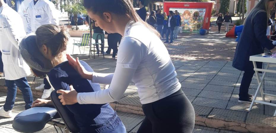 Exemplo dessa integração comunitária ocorreu no dia 13 de maio, quando acadêmicos do curso de Fisioterapia, acompanhados pela professora e fisioterapeuta Cristiane Moro, participaram da Feira da Saúde, na Praça Marechal Deodoro, em Taquara. No local, foram realizados atendimentos de “Quick Massage”, no público.