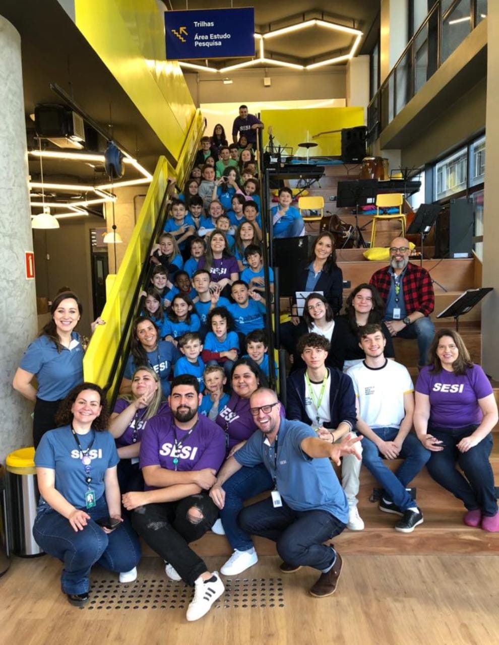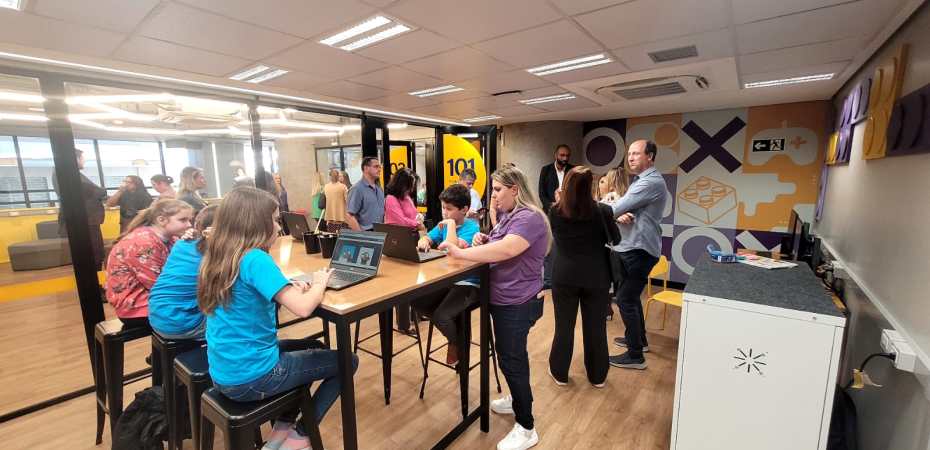 Na última quinta-feira, o Contraturno Tecnológico de Igrejinha marcou presença na inauguração do Instituto SESI de Formação de Professores, em Porto Alegre. O espaço nasce com a missão de qualificar gestores e educadores de escolas públicas e privadas, preparando os docentes para desafios da prática em sala de aula, conectando culturas, recursos tecnológicos e pedagógicos para gerar aprendizagens significativas. O SESI Igrejinha esteve representado por monitores e alunos que puderam vivenciar na prática a missão, realizando suas aprendizagens neste espaço, assim como fazem diariamente nas salas do Contraturno Tecnológico em Igrejinha.