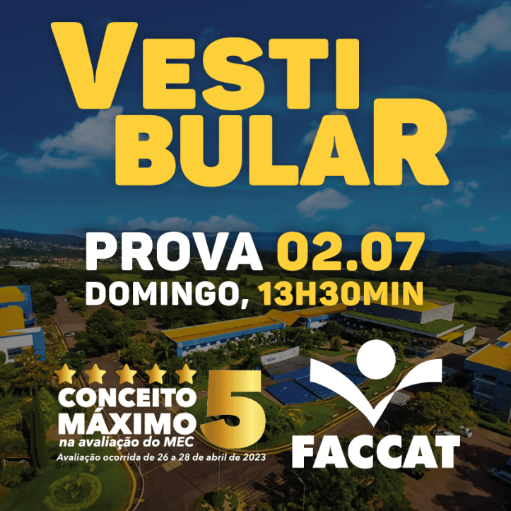 As Faculdades Integradas de Taquara (Faccat) dão a largada para o seu Vestibular de Inverno. As inscrições já estão abertas e seguem até o dia 30 de junho, em www.faccat.br. A prova do vestibular será no domingo, dia 2 de julho, às 13h30, no campus. A taxa de inscrição é a doação de 4 litros de leite de caixinha, que devem ser entregues no dia da prova. A Faccat foi avaliada pelo Ministério da Educação (MEC) no final de abril e obteve Conceito Máximo, com nota 5. Esta é a oportunidade de estudar em uma Instituição de Ensino Superior que tem qualidade no ensino e é reconhecida como uma das melhores faculdades comunitárias do Brasil.