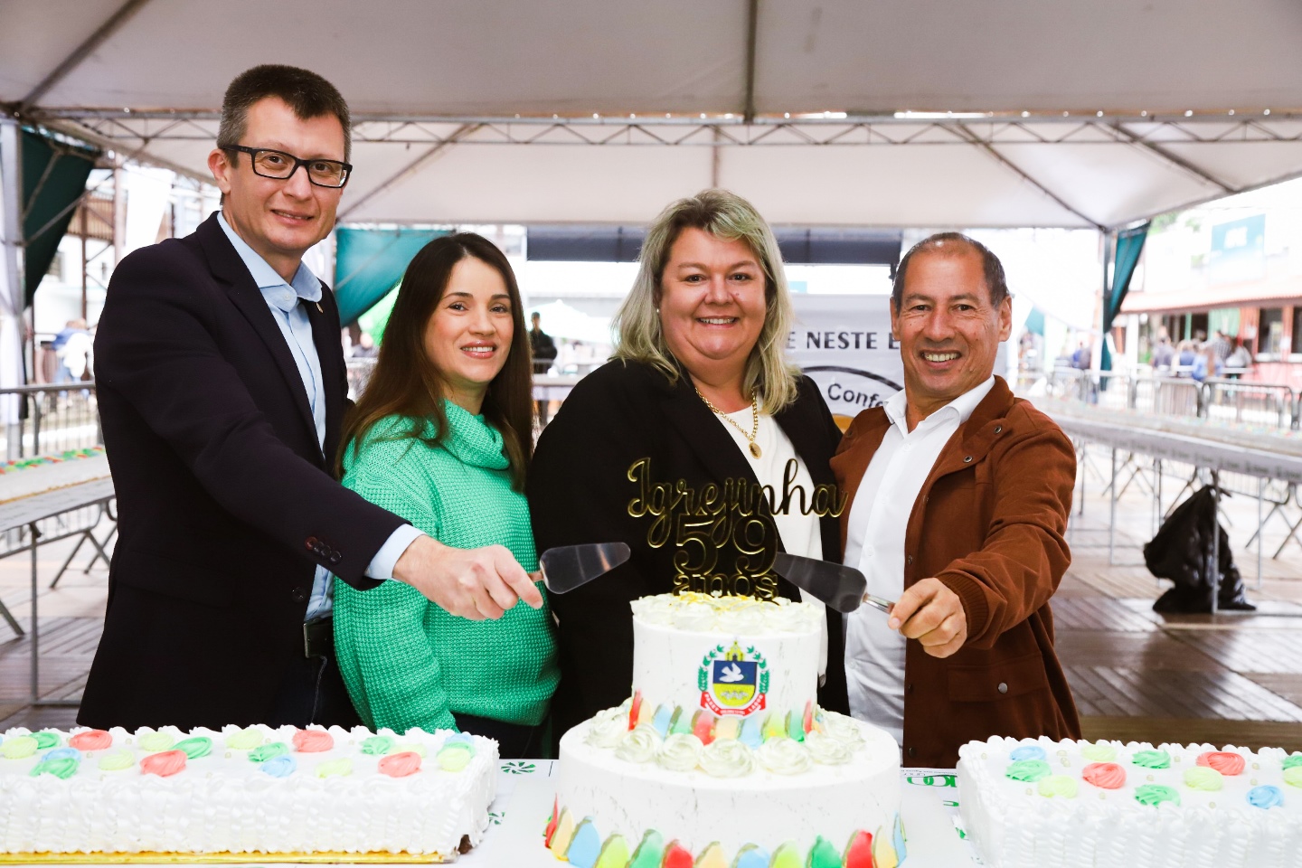 antecedendo o corte do bolo foi realizado o lançamento da marca oficial de 60 anos do Município de Igrejinha e 200 anos de Imigração Alemã, que serão completados em 2024. O lançamento da marca dá o start inicial às atividades de comemoração do próximo aniversário da cidade, o que será histórico e culturalmente importante para o município e para toda a comunidade de Igrejinha.