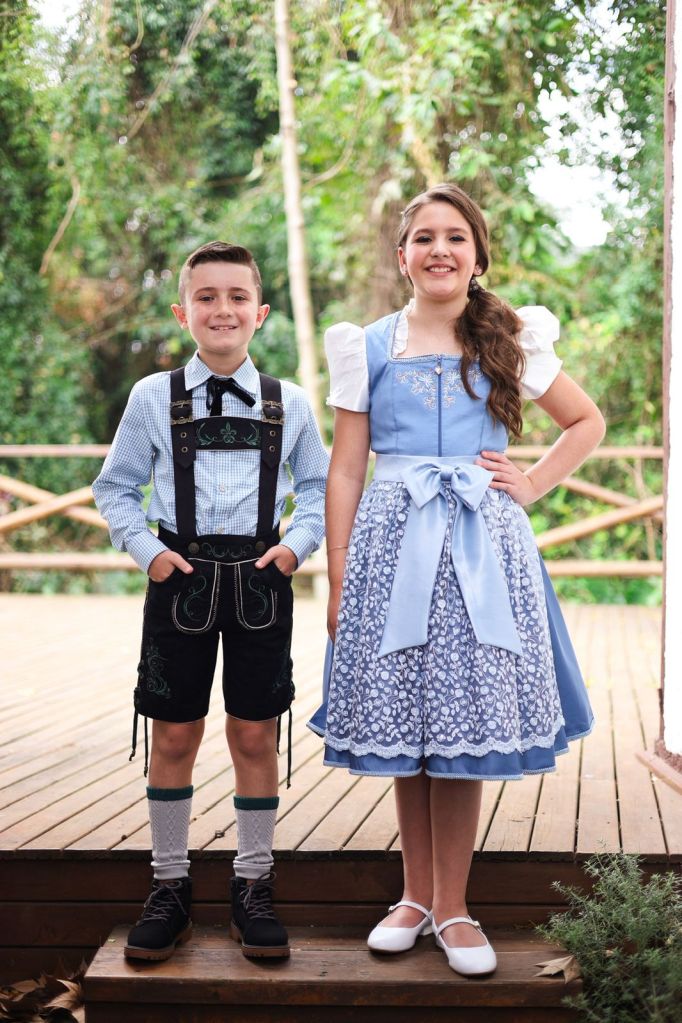 No último domingo (23), a comunidade conheceu os trajes oficiais que acompanharão o Bubchen Eduardo Siqueira Vingert e a Mädchen Manuella Kirsch Spelocin Correa, representantes infantis da 34ª Oktoberfest de Igrejinha. Nas próximas participações de divulgação da festa em eventos da região e durante a realização da Oktober, a dupla usará os trajes que buscam representar a alegria da maior festa comunitária do Brasil. A apresentação aconteceu durante o Momento Oktoberfest da Dankenfest, no Parque de Eventos Almiro Grings, em Igrejinha.