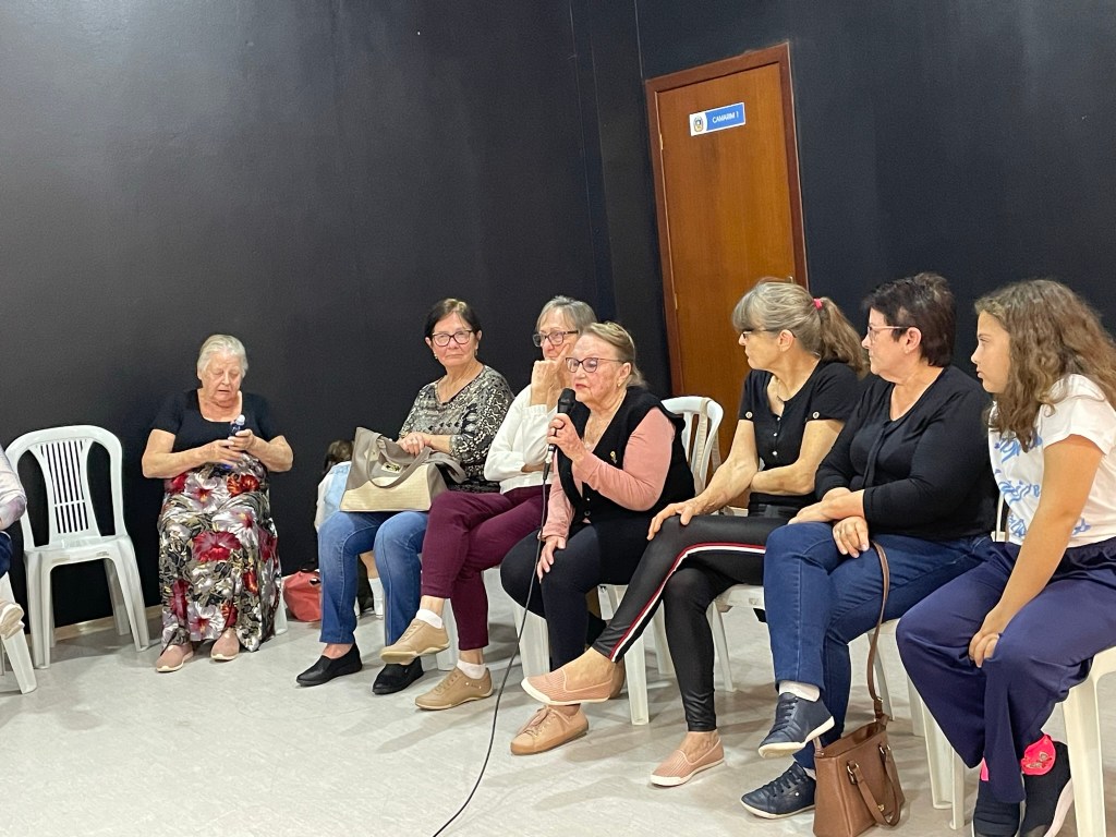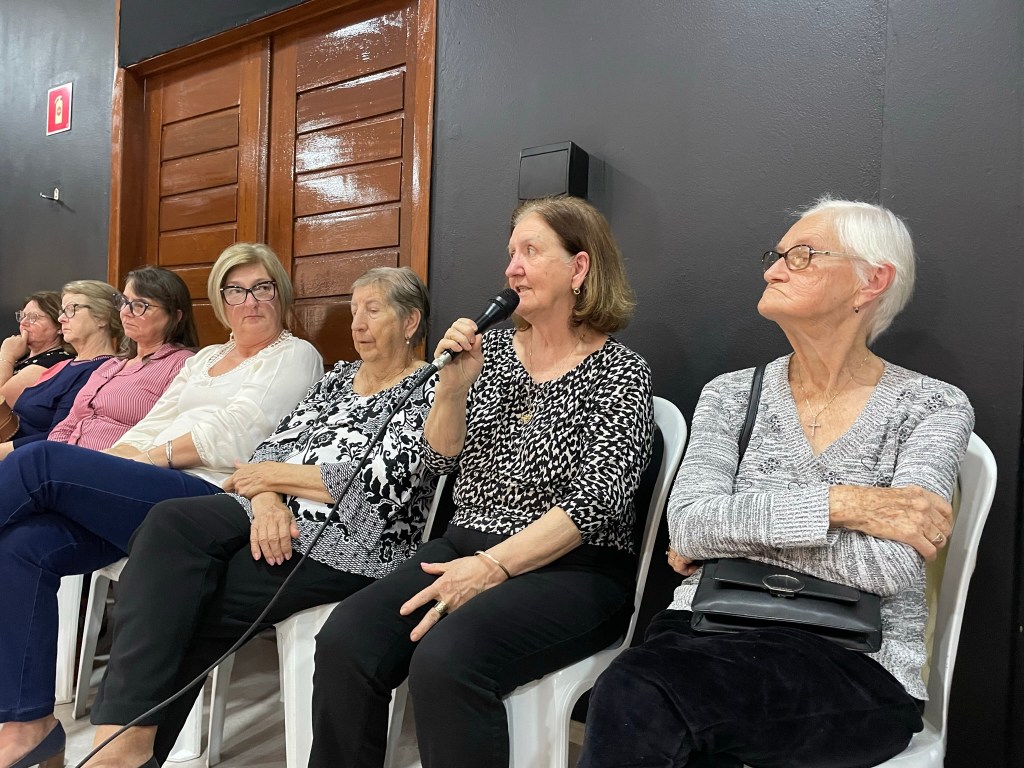“Começou de encontros pequenos nas casas e agora é um evento maior onde a gente pode ver mais pessoas e trocar mais histórias. A gente conversa com todos, num grande grupo, onde aprende mais. É muito bom falar do que a gente viveu, o que a gente pensa, saber mais sobre as outras mulheres. Eu gosto muito e acho muito importante a gente ter esses momentos”, declara Rejane Peters, 75 anos.