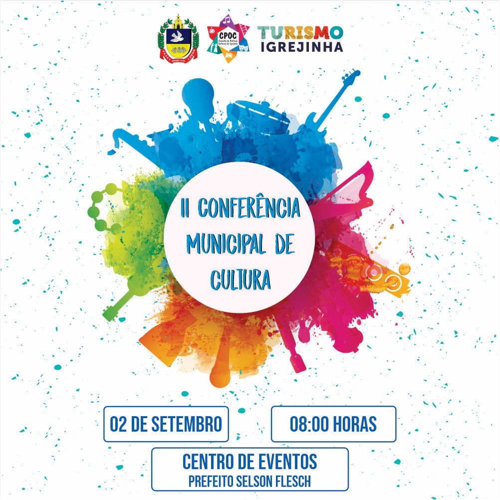 Organizada pelo Conselho de Políticas Culturais de Igrejinha e pela Secretaria de Turismo e Cultura, acontece no próximo sábado (02/09), a 2ª Conferência Municipal de Cultura. O evento será no Centro de Eventos Prefeito Selson Flesch, a partir das 08 horas, e integra a programação da 6ª Conferência Estadual de Cultura e da 4ª Conferência Nacional que tem por tema: Democracia e Direito à Cultura.