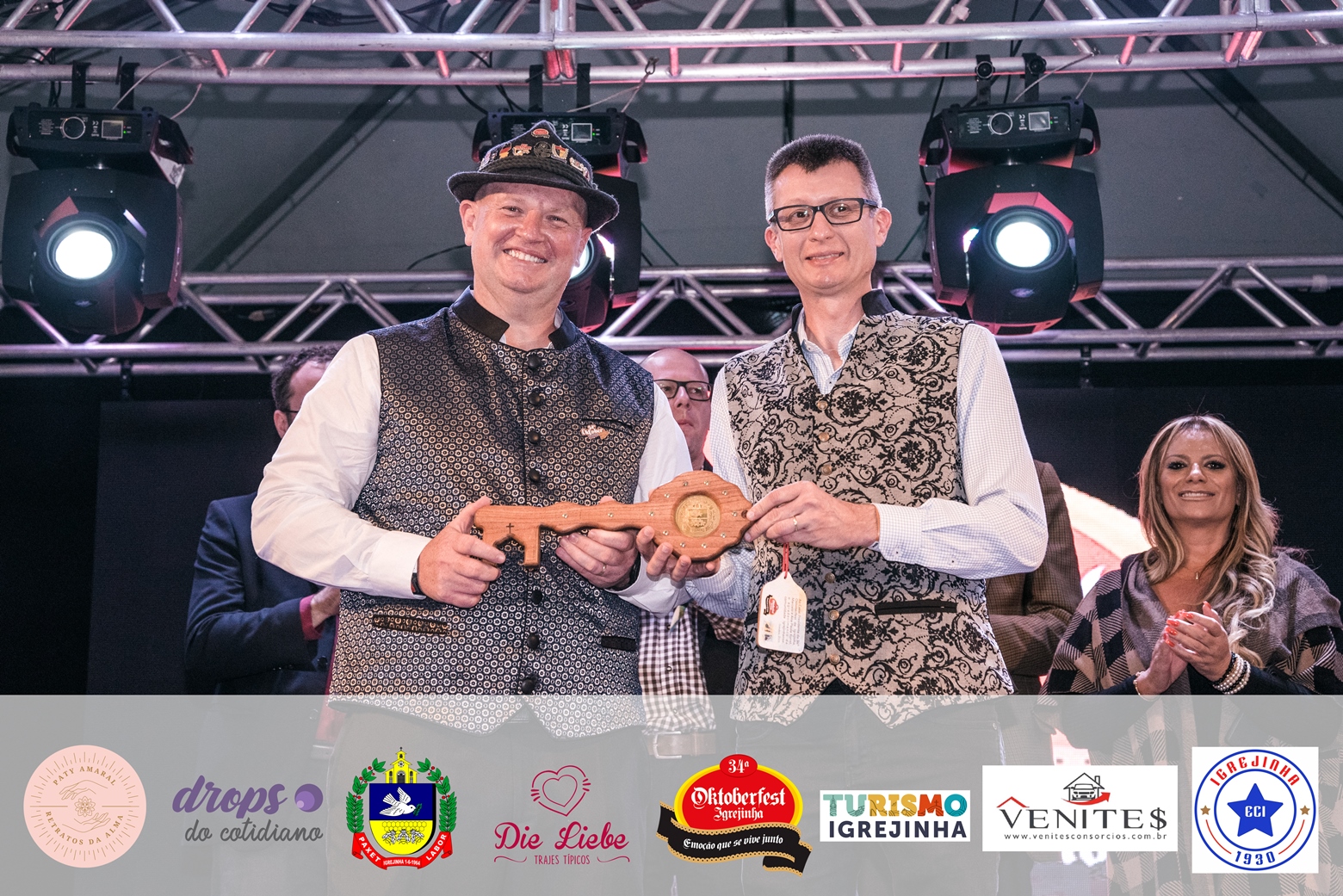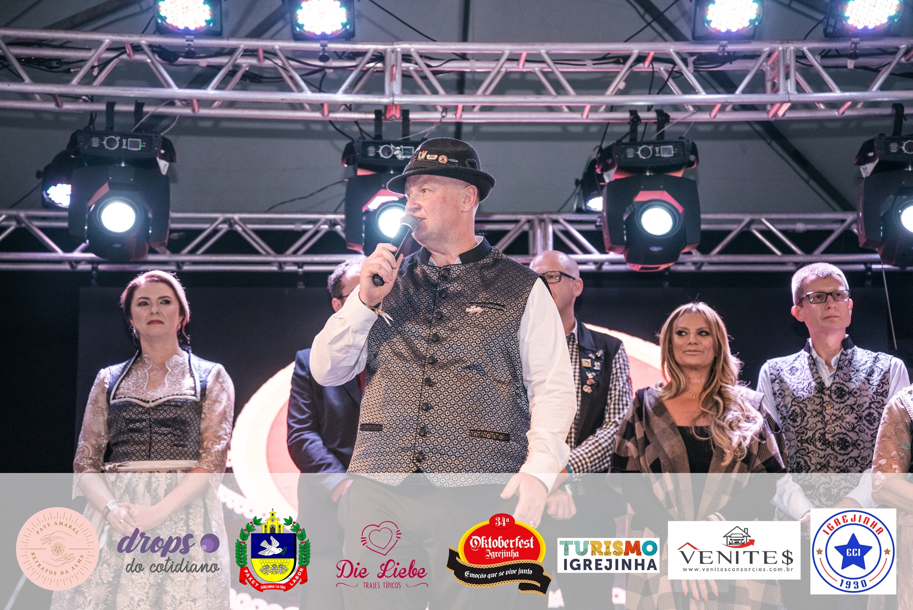 Os dias mais esperados do ano em Igrejinha finalmente chegaram. Nesta sexta-feira (20) foi dada a largada para a 34ª Oktoberfest de Igrejinha, conhecida como a maior festa comunitária do Brasil. Até 29 de outubro, o Parque de Eventos Almiro Grings será palco de atrações culturais, diversidade musical, gastronomia típica e muita diversão. A solenidade de abertura da noite reuniu diversas autoridades e a imprensa, além de contar com apresentações artísticas e culturais, incluindo o Coral Encanto de Igrejinha, formado por crianças do município, que entoou o Hino Municipal de Igrejinha, e o Grupo de Danças Kirchleinburg com danças típicas.