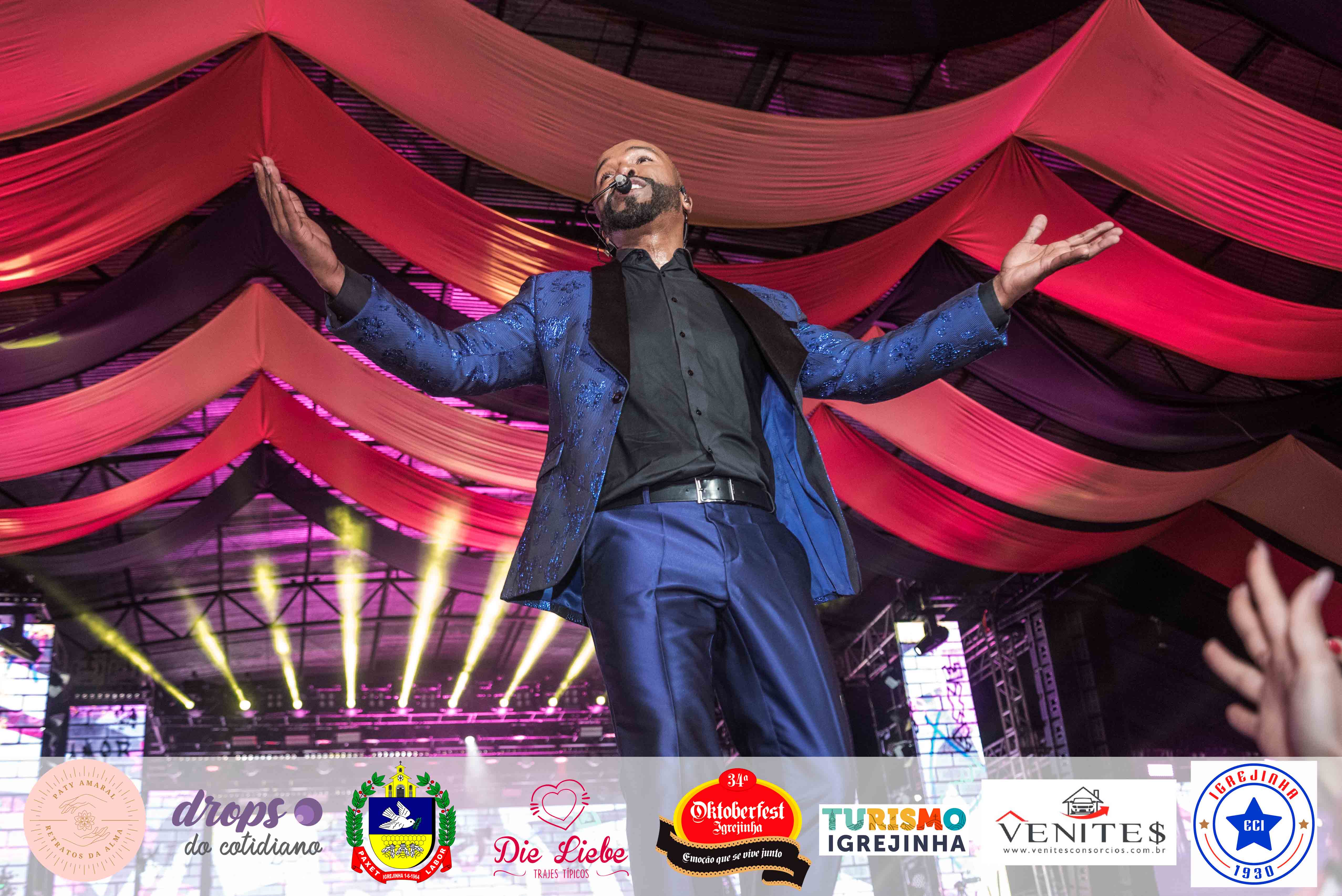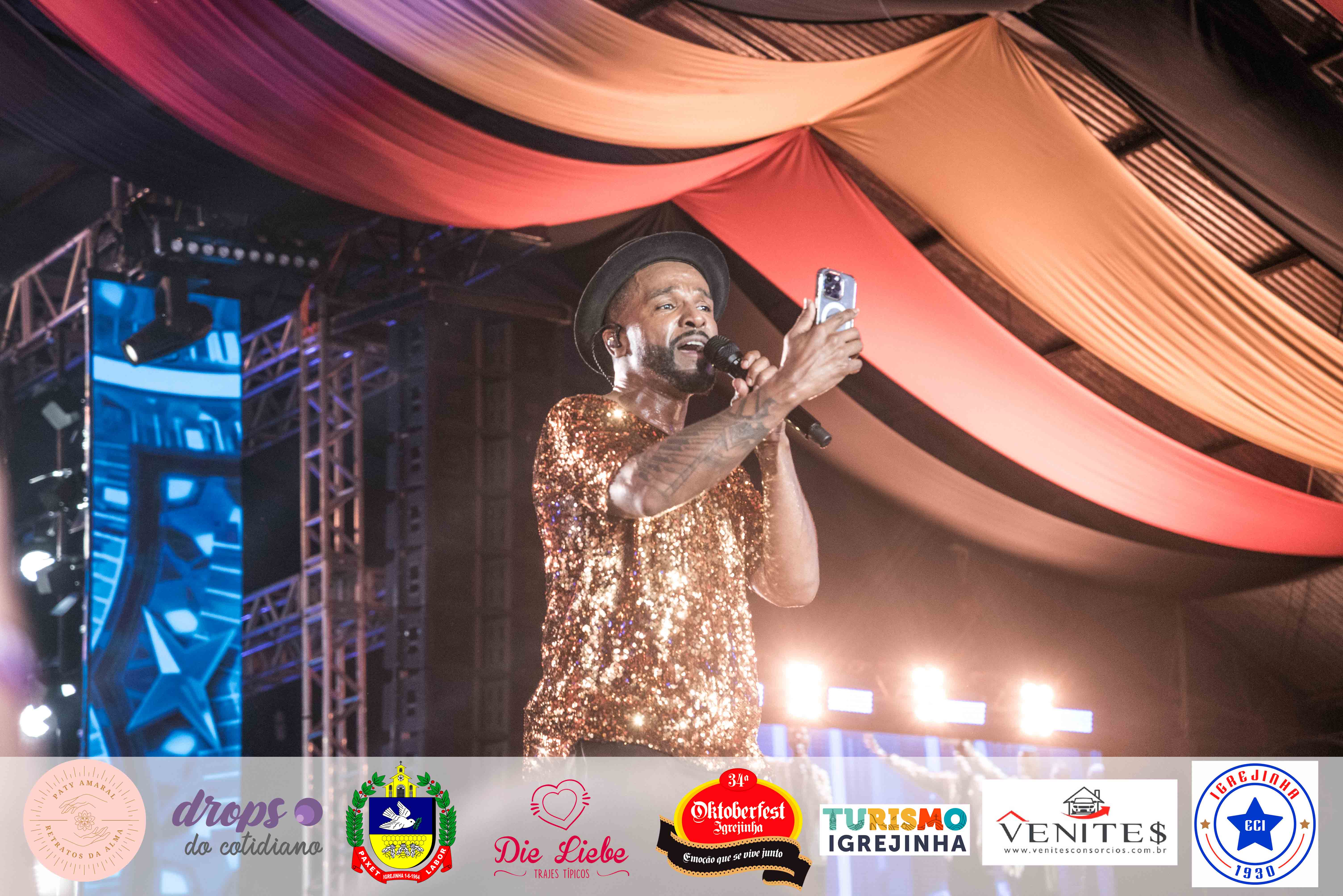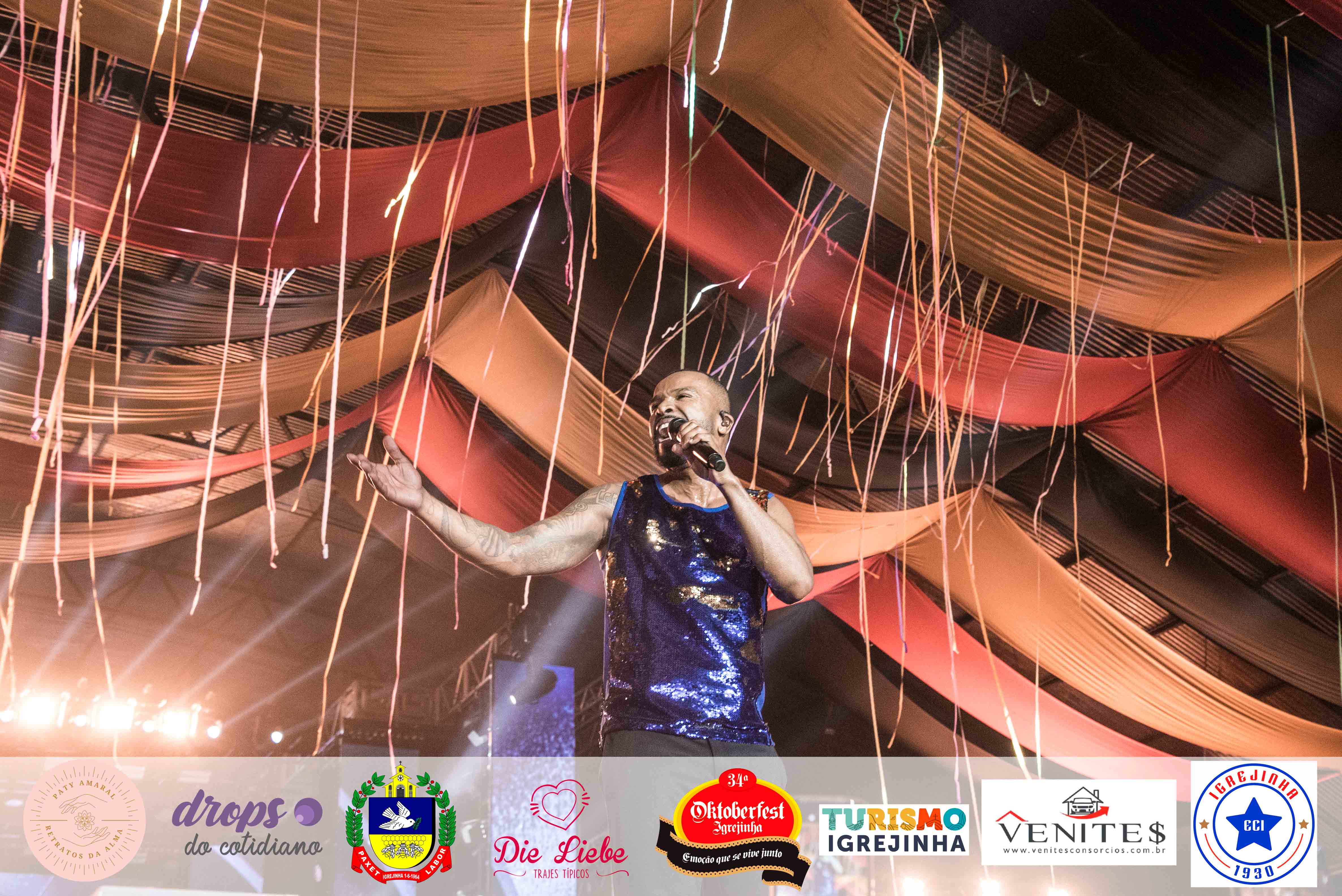 De volta à Oktoberfest de Igrejinha, Alexandre Pires animou o público e entregou tudo no palco. Com mais de três horas de show, o projeto “Baile do Nego Véio” trouxe emoção do início ao fim da apresentação no pavilhão 2 do Parque Almiro Grings. O cantor apresentou gêneros musicais que marcaram época, como axé, sertanejo, o forró, além, é claro, do pagode, com hits de quando o cantor era parte do grupo Só Pra Contrariar e emplacou sucessos como “Mineirinho”, “Depois Do Prazer” e “Essa Tal Liberdade”. Além de animar o público, Alexandre ressaltou a importância do trabalho realizado pela Oktoberfest de Igrejinha. “Eu parabenizo a todos os mais de três mil voluntários que fazem essa festa acontecer e que com ela, contribuem com Igrejinha e as demais cidades da região”.