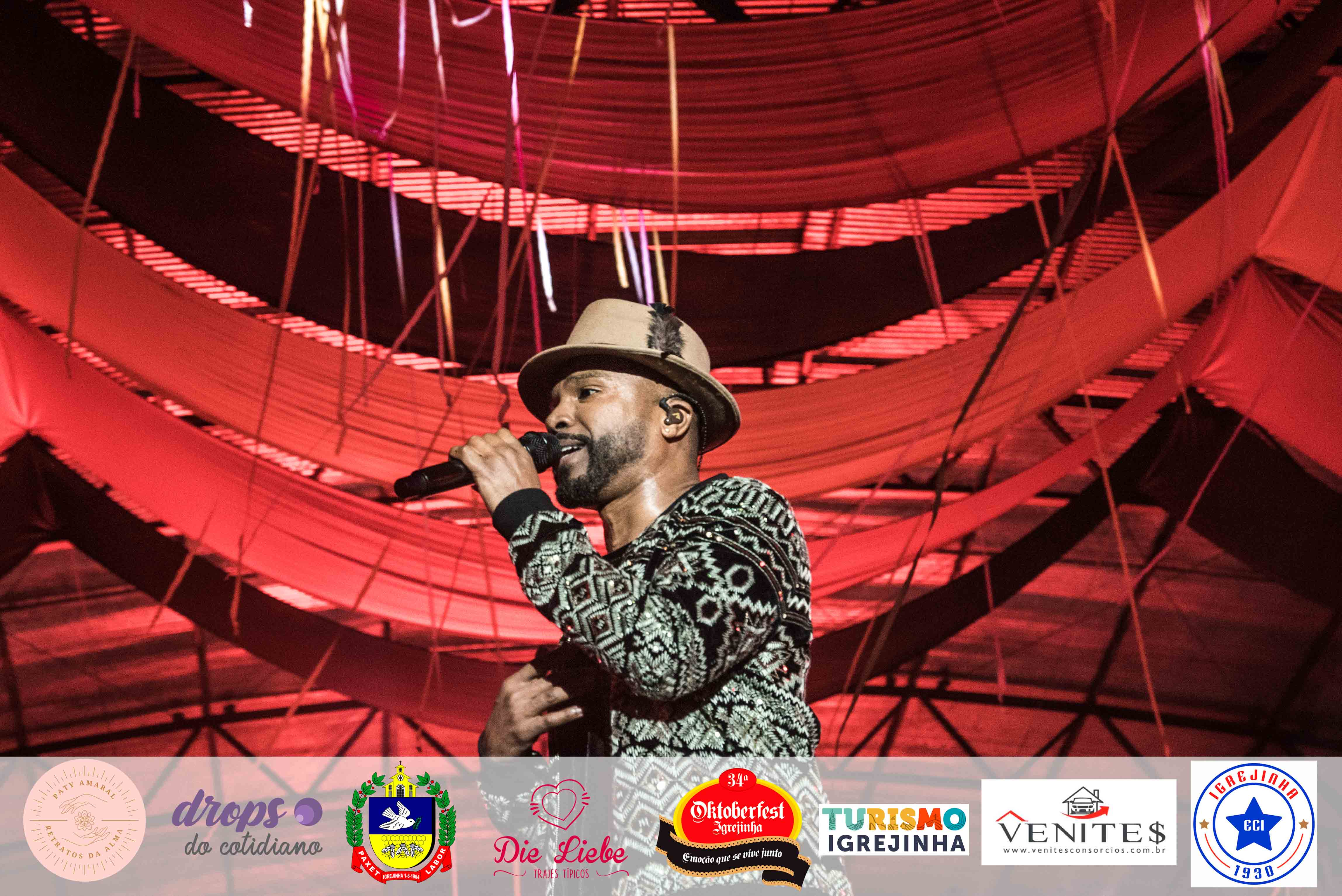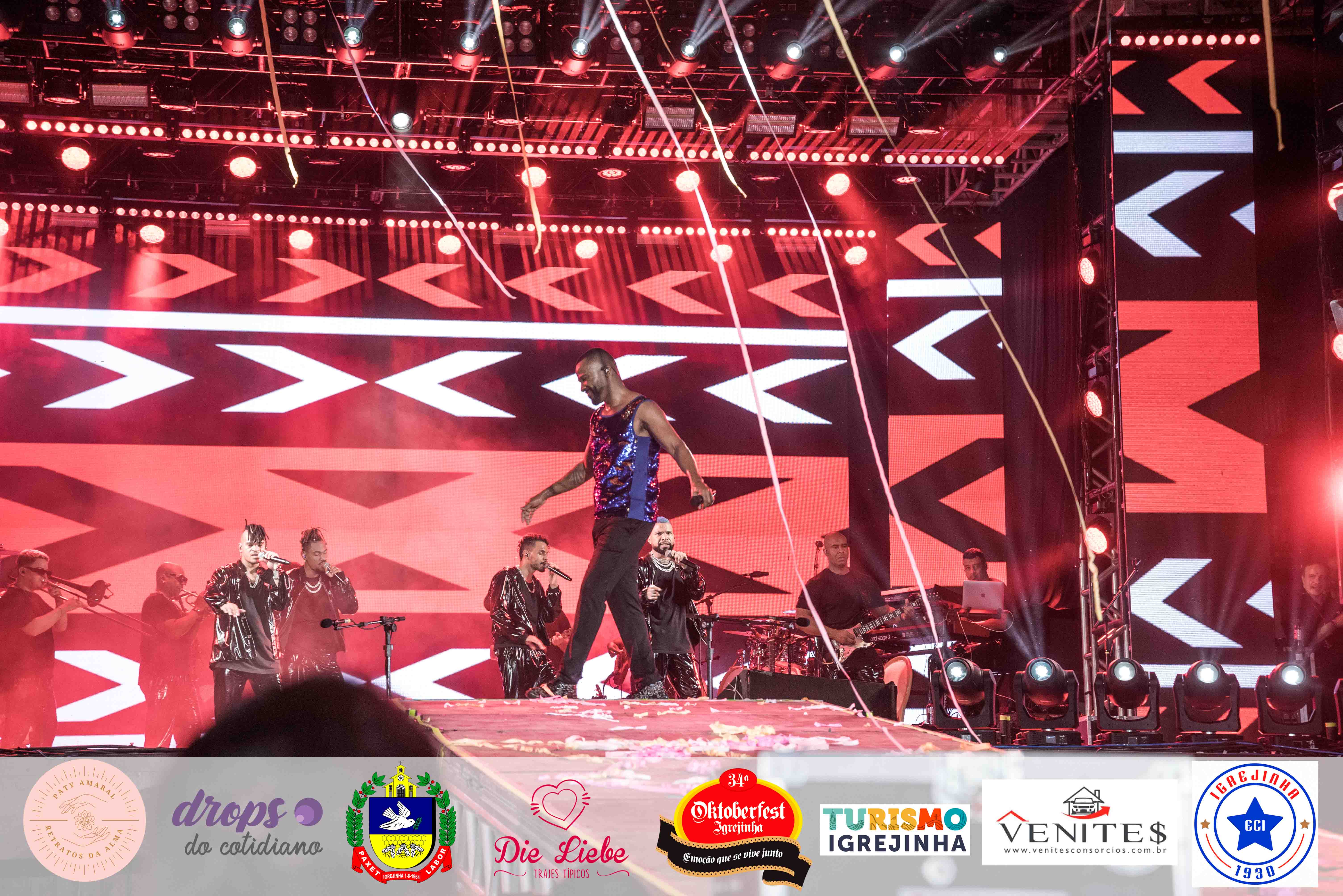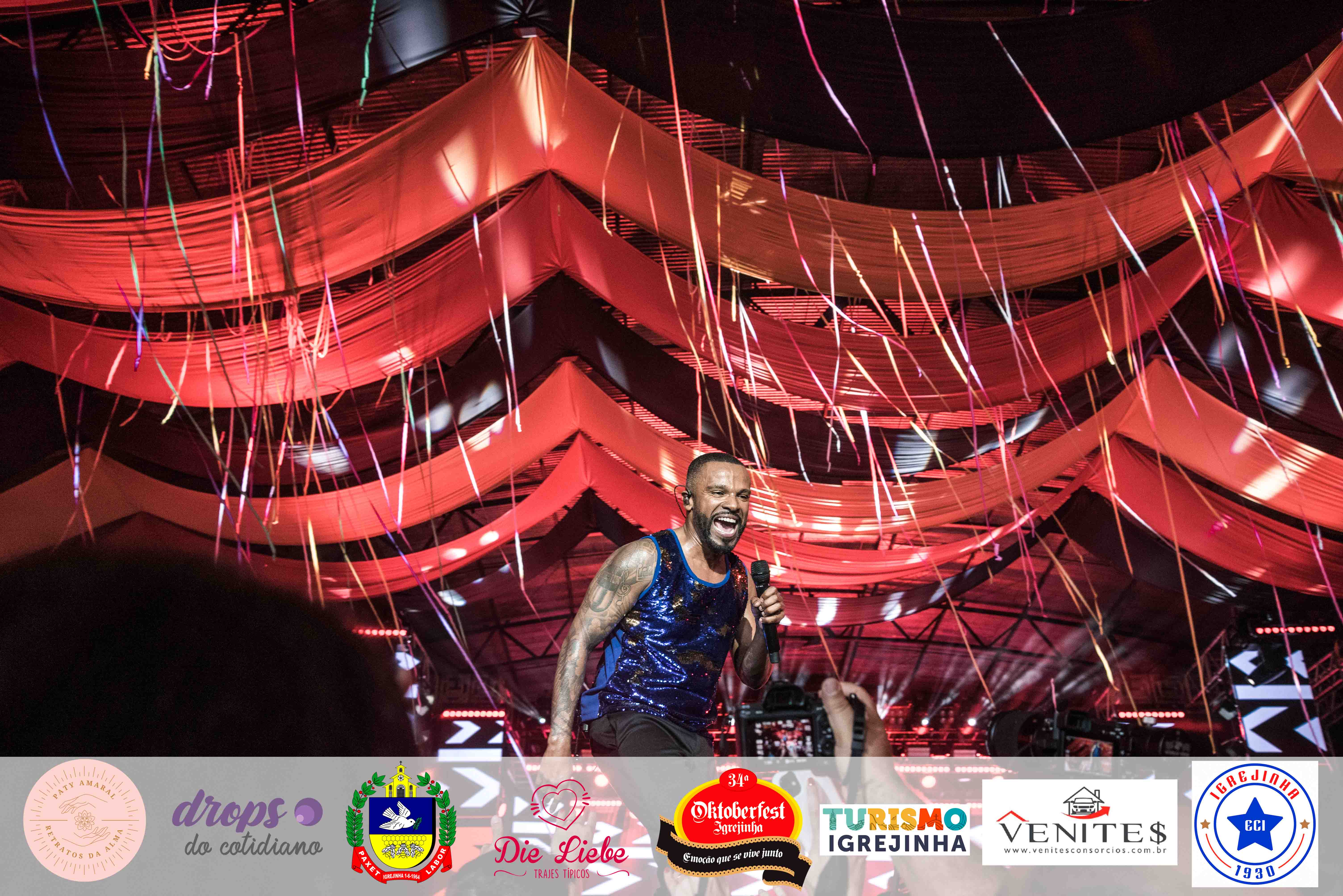 De volta à Oktoberfest de Igrejinha, Alexandre Pires animou o público e entregou tudo no palco. Com mais de três horas de show, o projeto “Baile do Nego Véio” trouxe emoção do início ao fim da apresentação no pavilhão 2 do Parque Almiro Grings. O cantor apresentou gêneros musicais que marcaram época, como axé, sertanejo, o forró, além, é claro, do pagode, com hits de quando o cantor era parte do grupo Só Pra Contrariar e emplacou sucessos como “Mineirinho”, “Depois Do Prazer” e “Essa Tal Liberdade”. Além de animar o público, Alexandre ressaltou a importância do trabalho realizado pela Oktoberfest de Igrejinha. “Eu parabenizo a todos os mais de três mil voluntários que fazem essa festa acontecer e que com ela, contribuem com Igrejinha e as demais cidades da região”.