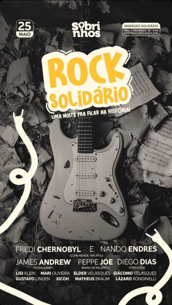 “Desde o momento que começou essa situação crítica acompanhei por ter muitos amigos aí na região. Através da rede de amigos conseguimos fazer movimentação bem boa através do Sobrinhos Rock Bar, fiz questão de dar suporte no backstage, correndo atrás de doações e tentando ajudar. Agora chega o momento que temos de alguma maneira continuar as demandas do nosso trabalho. A gente como músicos tem que dar apoio total a uma casa que fomenta a cultura. Não é só um lugar para tu ir tomar cerveja e curtir boa música. É também pra isso. Mas é um lugar que movimenta a cena local de desenvolvimento cultural e isso tem que ser restabelecido o quanto antes. É um lugar que emprega os músicos, o pessoal da copa, segurança. Agora o que a gente vai mais precisar no Estado é todas as frentes de trabalho voltando a produzir, pois a gente precisa da economia girando, que é com as pessoas trabalhando”, James Andrew (Tequila Baby)