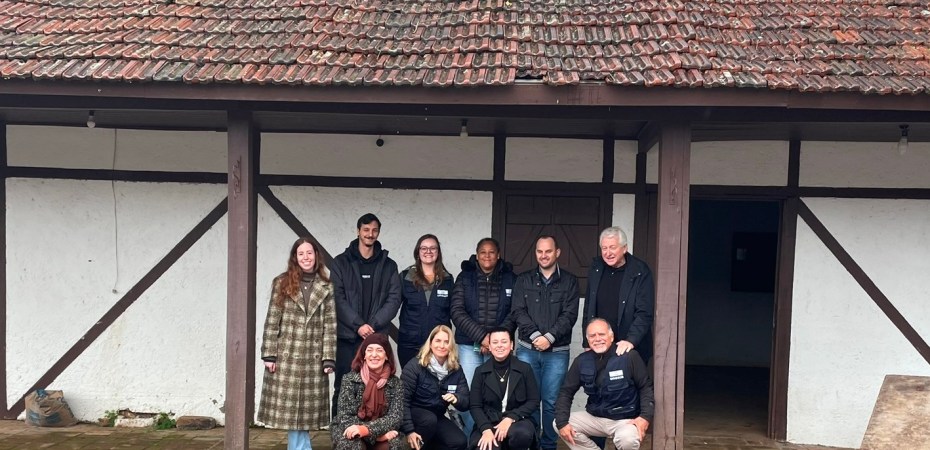 No último sábado (13), o grupo visitou o Parque de Eventos Almiro Grings, conhecendo a Vila Germânica e verificando o que restou do acervo e as possibilidades de reconstrução do Museu Prof. Gustavo Adolfo Koetz e do Arquivo Histórico ali localizados. Estiveram também na Steinhaus (Casa de Pedra) que está em processo de restauro. Eles foram recebidos pela museóloga Daniela Schmitt e pela historiadora Alice Jungblut Braun, da Movimento Curadoria e Projetos Culturais, por representantes da administração municipal, através da Secretaria de Turismo e Cultura, e pelo CTG Sentinela da Tradição, que recepcionou a equipe com um almoço especial. A empresa Movimento tem atuado de forma voluntária na recuperação dos itens do acervo do Museu, além disso, é responsável pelo restauro da edificação (Steinhaus).
