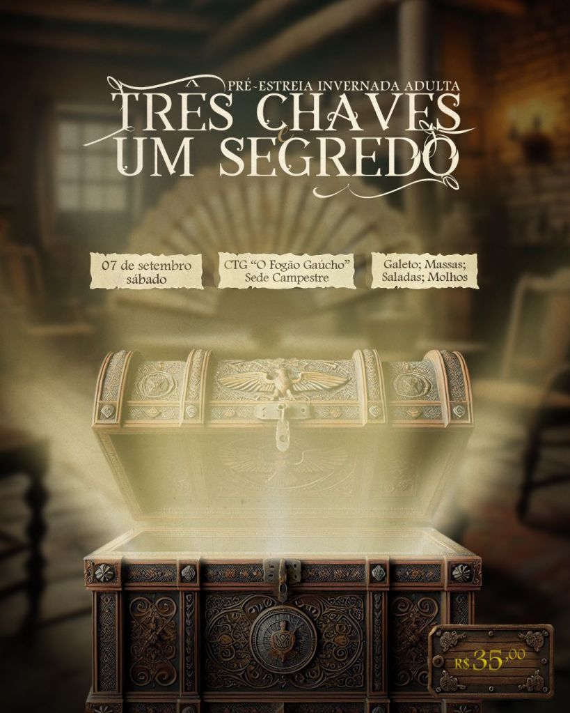 Nos últimos dias, o grupo e seus integrantes vem compartilhando nas redes sociais um card com a temática “Três Chaves Um Segredo” e a inspiração para o projeto que será apresentado. “Vai ser algo diferente e inovador. Algo nunca trazido por uma entidade tradicionalista para a região. Vamos com uma proposta extremamente inovadora”, conta a diretora artística, Vânia Port, convidando todos para acompanharem o mistério sendo desvendado.