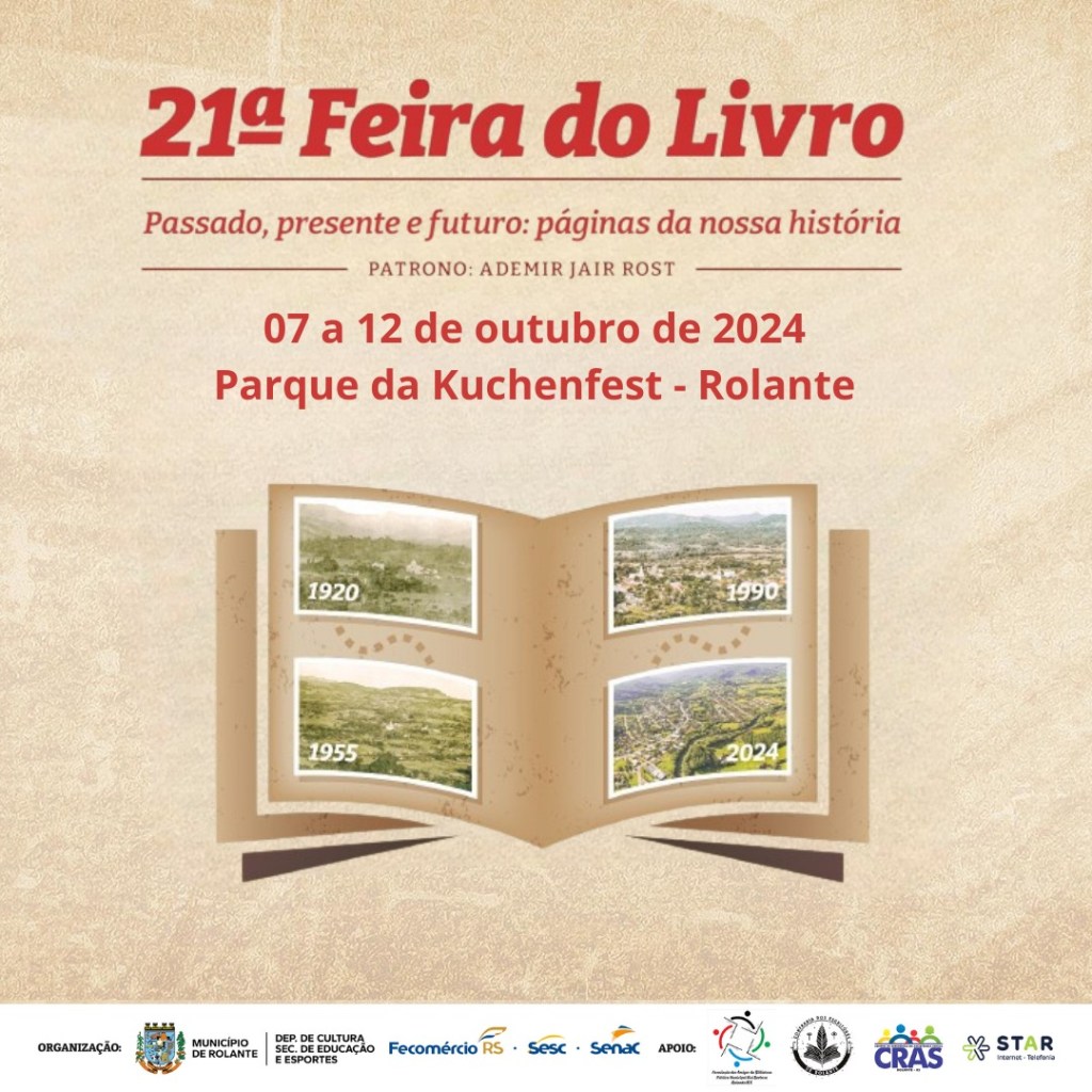 A tradicional Feira do Livro de Rolante, que estava marcada para acontecer em maio e precisou ser adiada devido às enchentes, agora será realizada. Com o tema Passado, presente e futuro: páginas da nossa história, a 21ª Feira do Livro de Rolante acontecerá de 07 a 12 de outubro, no Parque da Kuchenfest. Neste ano, a feira tem como patrono o historiador e escritor Ademir Jair Rost.
