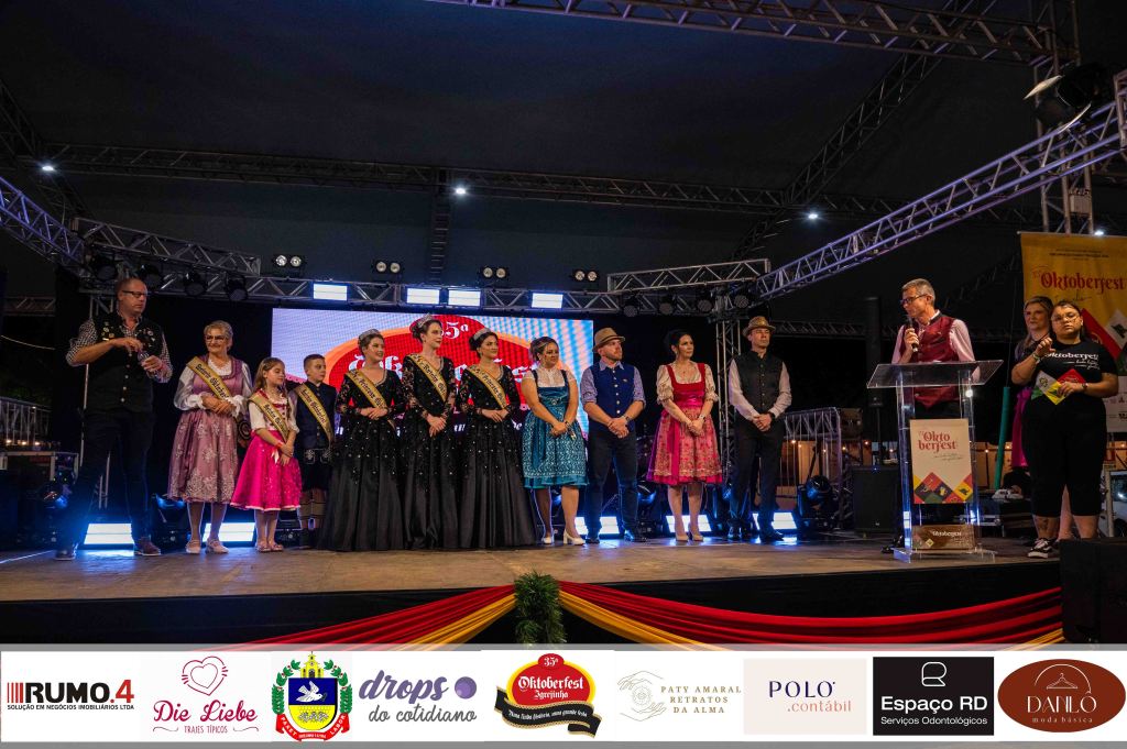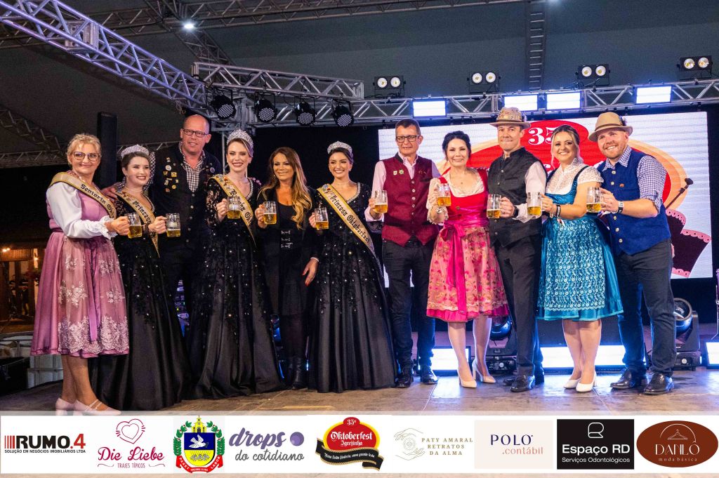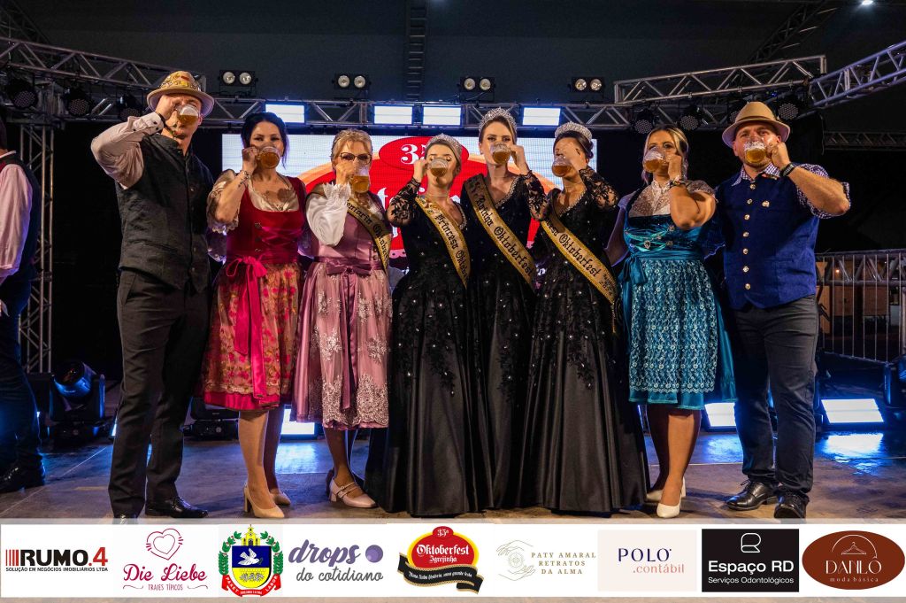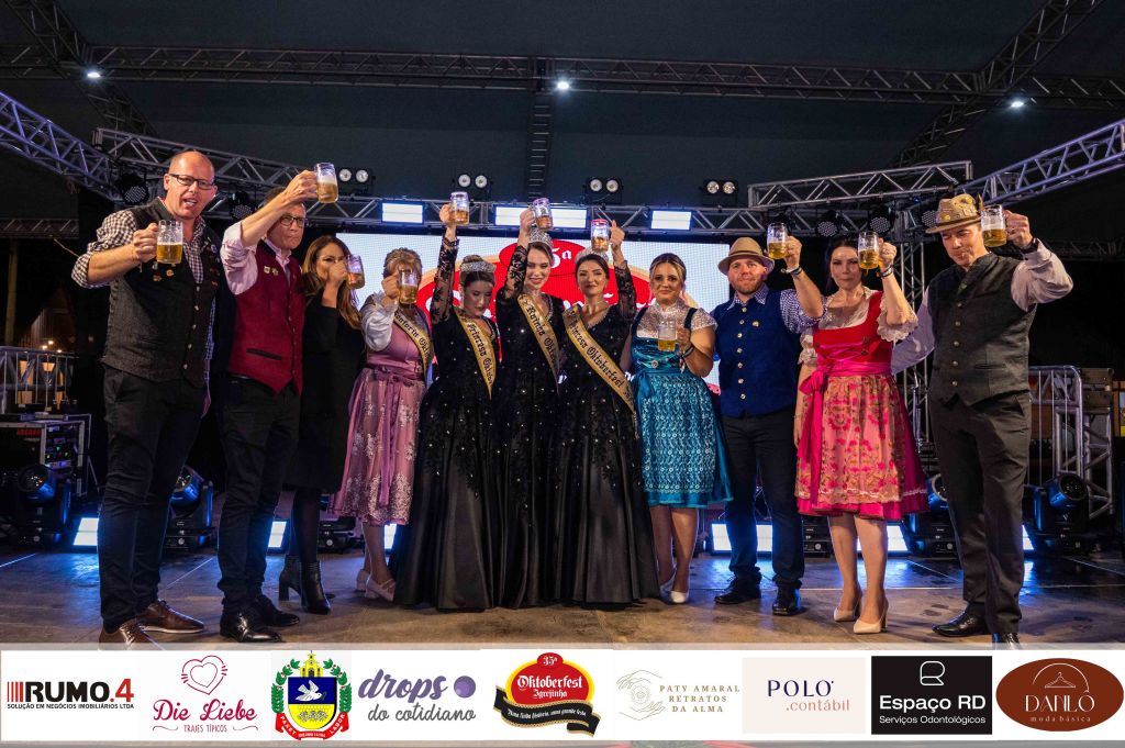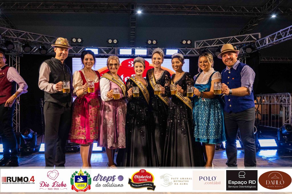 As soberanas Rainha Roberta Klein e as Princesas Tainá dos Santos e Daniela Coitinho Hachenher, também aproveitaram a oportunidade para dar seu cumprimento em alemão e expressar a alegria com a chegada dos dias mais alegres do ano. “Esse momento foi tão aguardado por todos nós e está começando mais um lindo capítulo na história da nossa grande festa”, exclamou Daniela. “Em maio nos unimos e fomos ajudar a população. No parque nos deparamos com um cenário de destruição e pensamos que nosso sonho seria adiado, mas graças a união de todos nosso parque foi revitalizado para que hoje pudéssemos estar aqui celebrando o início de mais uma festa”, complementou Tainá. Já a rainha Roberta resgatou a história dos imigrantes alemães, que vieram para uma terra de incerteza e desafios, reforçando que “lar é onde temos amigos” e destacando o emprenho de todos os voluntários neta edição. “Preparamos essa festa com muito carinho para oferecer a melhor experiência a cada visitante”, declarou emocionada.