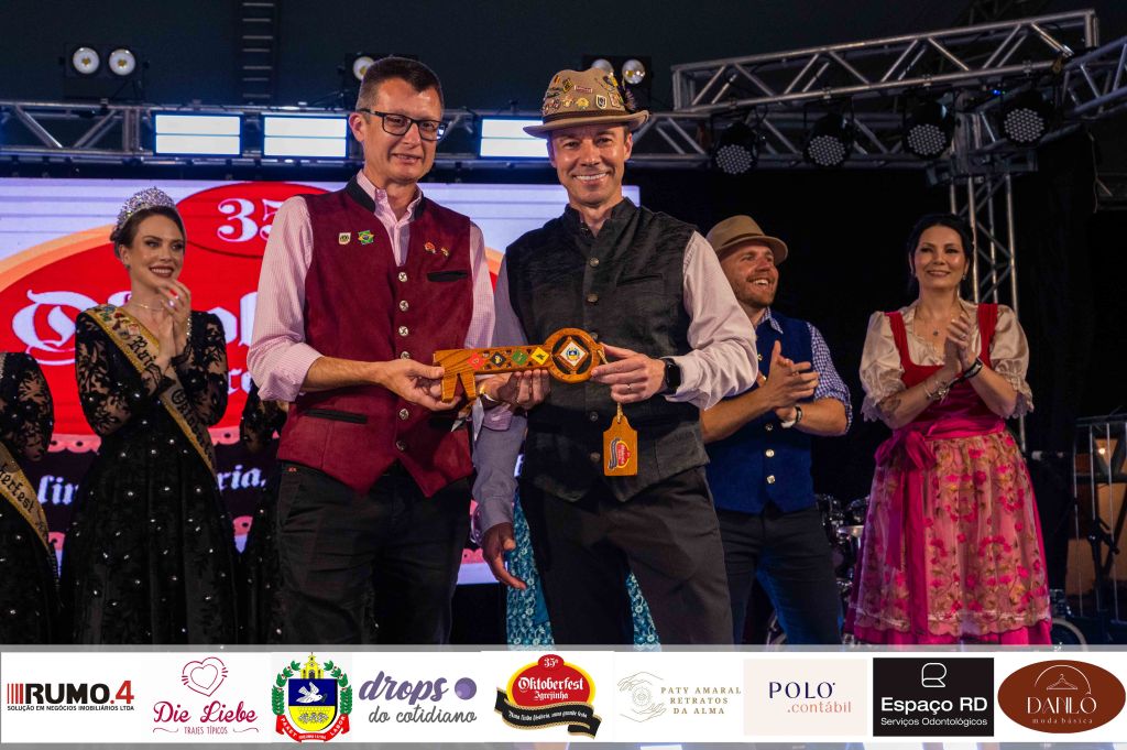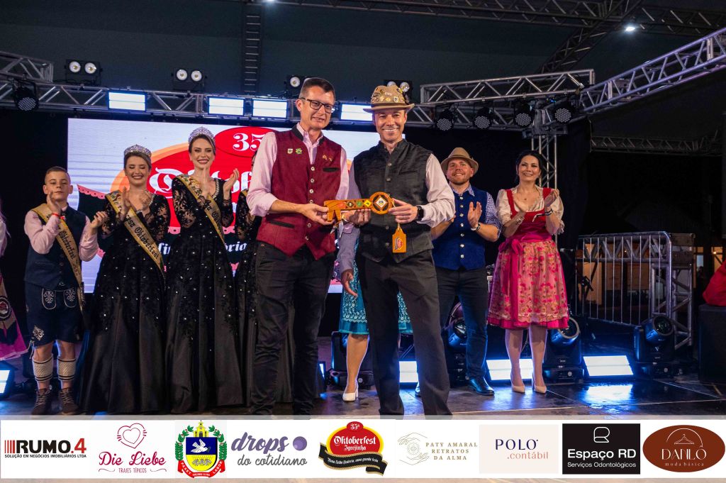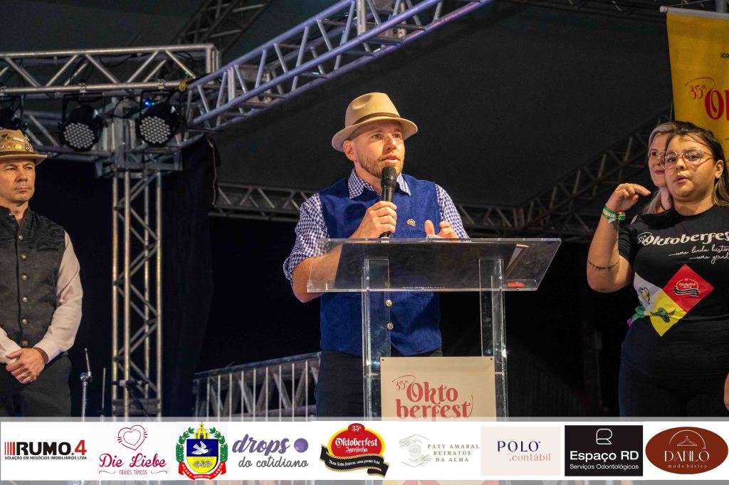 A solenidade também contou com o pronunciamento do deputado estadual Joel Wilhelm, que definiu esta edição como a festa da retomada. “Este foi um ano diferente e difícil, por isso precisamos ser muito gratos a tantos municípios que nos auxiliaram. Parecia impossível nos primeiros dias, mas aconteceu com o esforço de muitas mãos e logo voltamos a normalidade”, relembrou. Wilhelm ainda reforçou que a Oktober é motivo de orgulho a todos da região. “Vamos quebrar recordes de integração e união. Essa edição deixa um legado de que somos a maior festa comunitária do Brasil e do mundo”, complementou.