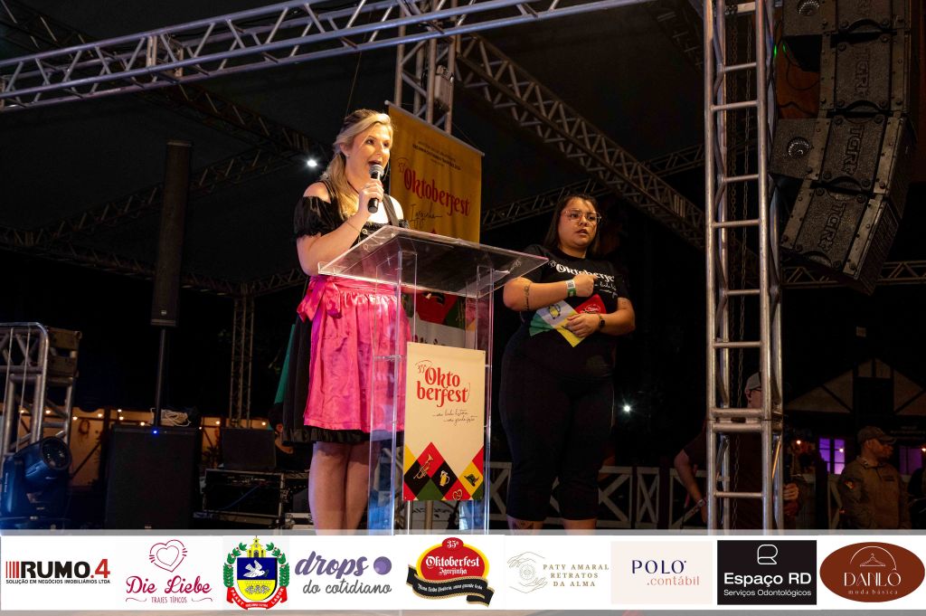 As Soberanas da 35ª Oktoberfest de Igrejinha discursam emocionadas.