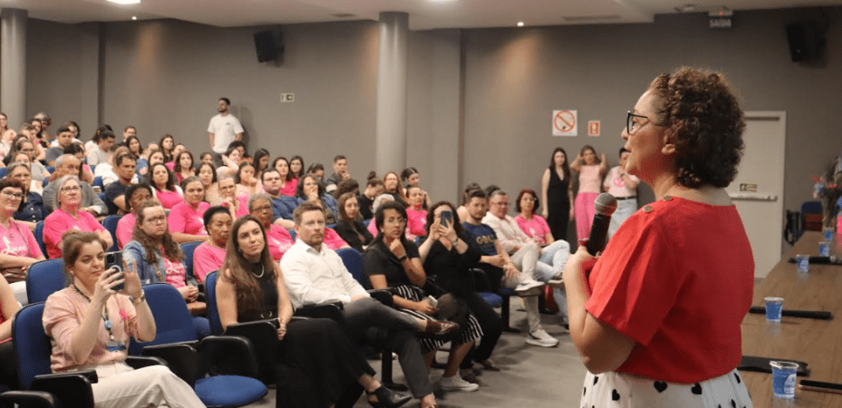 Na noite de 31 de outubro, o Seminário Integrado do Outubro Rosa reuniu mais de 200 participantes, batendo recorde de público. A ação, realizada no Auditório 3 do Centro de Eventos da Faccat, foi promovida em parceria com o grupo Laços de Amor e com os cursos de Enfermagem, Psicologia e Fisioterapia. O seu objetivo foi destacar a importância da conscientização e prevenção do câncer de mama, reconhecido internacionalmente no mês de outubro.