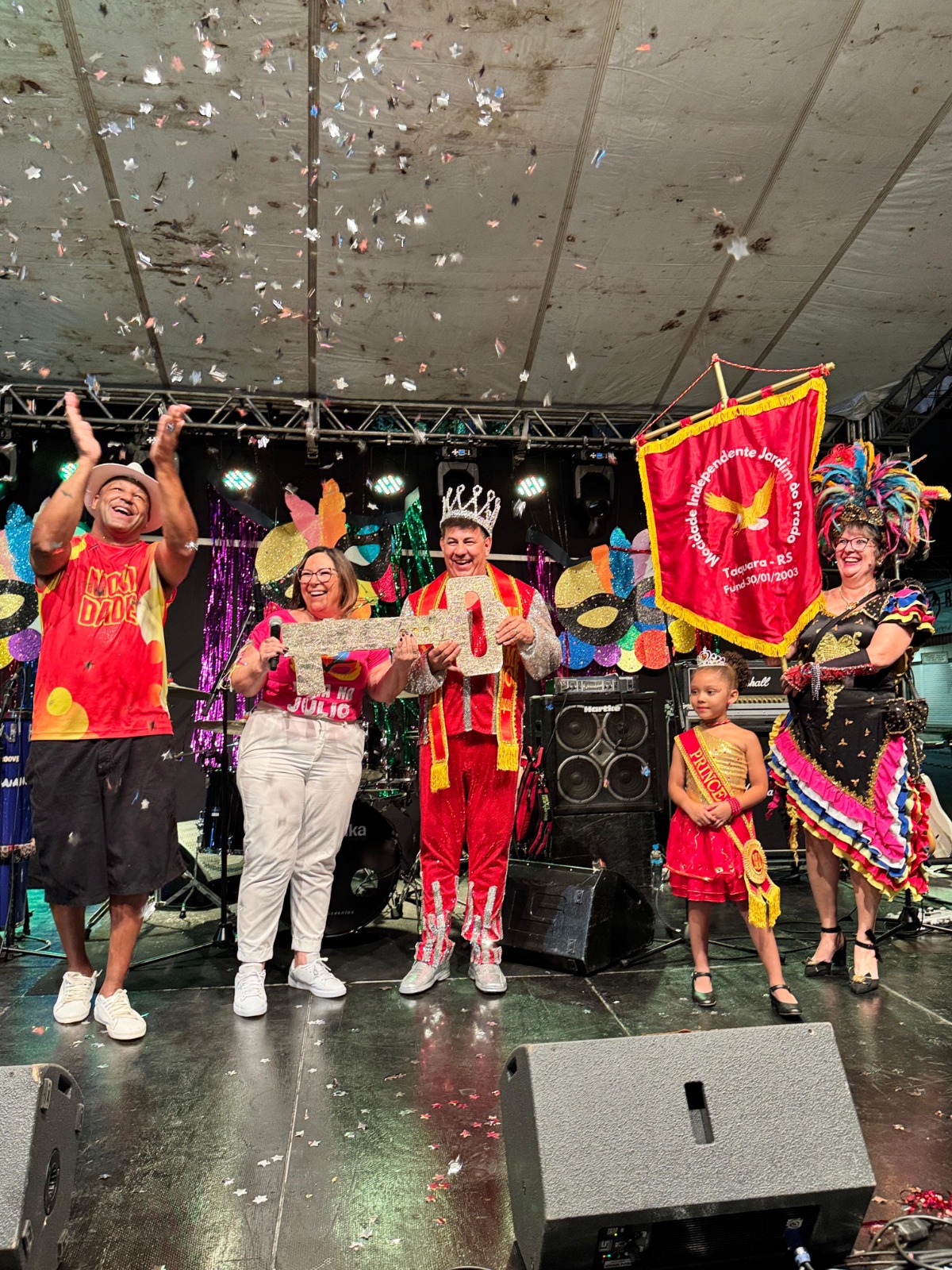 Logo em seguida, o evento ficou ainda mais contagiante com os desfiles do Grupo Sol Nascente, de Taquara; e das escolas de samba Cruzeiro do Sul, de Novo Hamburgo; e Mocidade Independente Jardim do Prado, também de Taquara. A Banda Aquele Abraço encerrou a programação da Folia na Júlio 2025, evento que reuniu a participação de cerca de três mil pessoas, entre crianças e adultos.