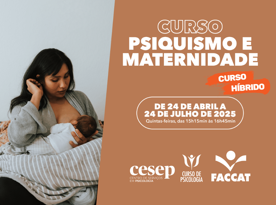 O Centro de Serviços em Psicologia (CESEP) e o curso de Psicologia das Faculdades Integradas de Taquara (Faccat), estão inscrevendo para o curso “Psiquismo e Maternidade“. Ele abordará questões psicológicas e clínicas relacionadas à maternidade, com foco em temas como prematuridade, perda fetal, infertilidade e negação da gravidez. O curso de extensão será gratuito, com uma carga horária de 18 horas e ocorrerá entre 24 de abril e 24 de julho, todas as quintas-feiras, das 15h15min às 16h45min, no campus da Faccat.