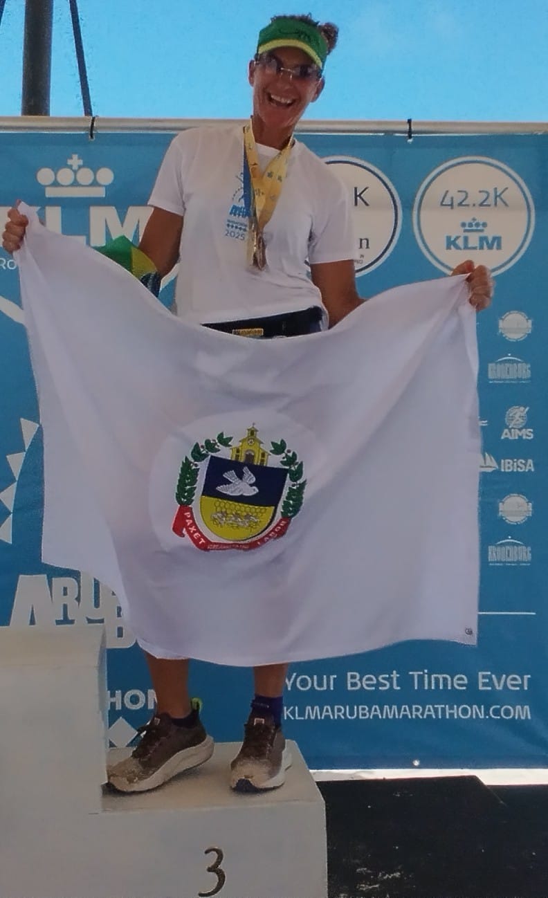 A igrejinhense Andreia Henssler fez um pódio internacional neste domingo (08). A atleta conquistou a medalha de bronze na meia maratona KLM Marathon 2025, realizada em Aruba, uma ilha do Caribe. Enfrentando muito calor e vento, a “Lagartixa”, como é conhecida, alcançou o terceiro lugar nos 21 quilômetros.
