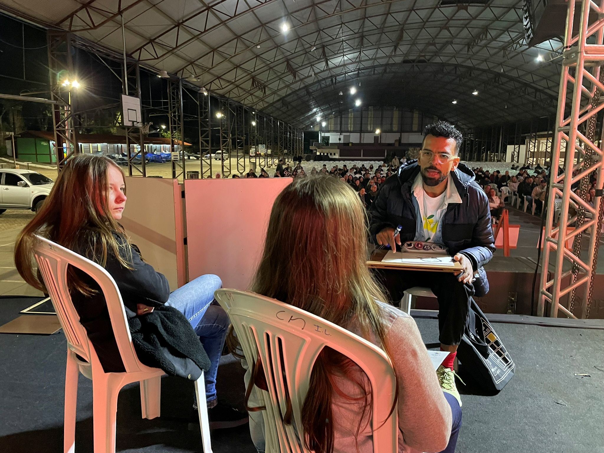 A solenidade de abertura da 22ª Feira do Livro foi realizada na noite da quarta-feira (11). Após o momento de fala das autoridades, aconteceu o reconhecimento aos alunos escritores que tiveram seus textos destacados em cada escola. Na sequência, o público foi presenteado com a presença da apresentadora Alice Bastos Neves, que realizou a palestra “Ressignifique-se, histórias para sua vida”. Conhecida por apresentar o Globo Esporte RS, com cobertura dos mais importantes eventos esportivos do mundo, enfrentou um câncer e compartilhou sua luta, tornando-se um símbolo de persistência e otimismo. A noite gelada foi aquecida por muita inspiração.