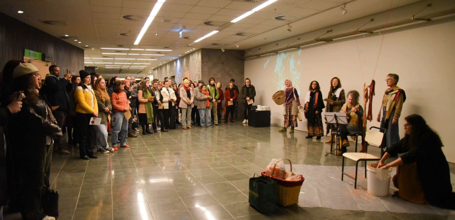 Durante a abertura, o público pôde interagir com duas performances artísticas. A primeira, da acadêmica Fernanda Nielsen em parceria com o grupo Matricárias, propôs uma ação de troca simbólica envolvendo doações de agasalhos e alimentos. A segunda, Astuta Penélope: um ritual feminista sobre tramar e tecer, contou com a participação das artistas Vera Amaral, Cristiane Lawall e Loraine Aryos. Simultaneamente, outros artistas convidados criaram obras ao vivo no espaço expositivo, ampliando o caráter colaborativo da noite.