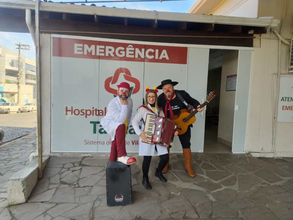 O projeto Palhaçoterapia, apoiado pela Lei Aldir Blanc em Taquara, realiza intervenções musicais no Hospital Bom Jesus (HBJ), com o objetivo de promover momentos de descontração para pacientes, acompanhantes e profissionais da saúde. A última apresentação do grupo ocorreu neste domingo (06), na casa de saúde.