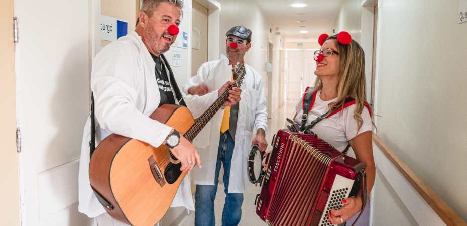 O projeto Palhaçoterapia, apoiado pela Lei Aldir Blanc em Taquara, realiza intervenções musicais no Hospital Bom Jesus (HBJ), com o objetivo de promover momentos de descontração para pacientes, acompanhantes e profissionais da saúde. A última apresentação do grupo ocorreu neste domingo (06), na casa de saúde.