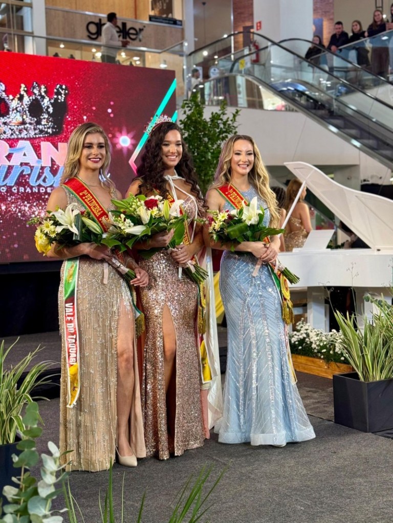 Representando a região Uva e Vinho, a Vitória Eduarda Grando foi eleita Rainha do Turismo RS. A nova corte estadual é completada por Jennifer Lopes, do Litoral Norte, eleita 1ª princesa, e Eduarda Dahm, representante do Vale do Taquari, como 2ª princesa. As soberanas agora assumem o compromisso de representar o Estado em eventos e ações de promoção turística, levando consigo as tradições e belezas de suas regiões.