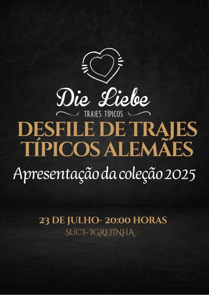 Na semana em que se comemora os 201 anos da imigração alemã no Brasil, a Die Liebe Trajes Típicos realizará um desfile de trajes típicos alemães. No próximo dia 23 de julho (quarta-feira), às 20 horas, na Sociedade União de Cantores de Igrejinha (Suci), serão apresentadas peças da Coleção 2025 da marca, além de muita informação cultural através das roupas.