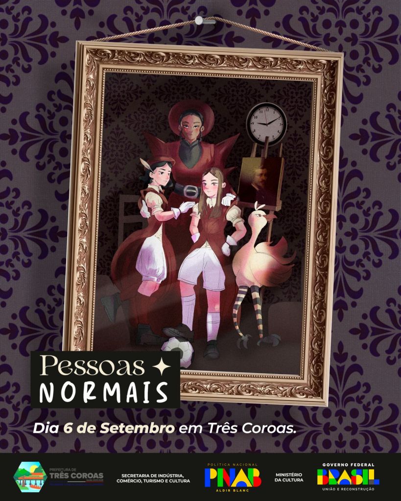 Esse espetáculo tem financiamento pela Política Nacional Aldir Blanc de fomento à cultura, pelo município de Três Coroas através da Secretaria de Indústria, Comércio, Turismo e Cultura.