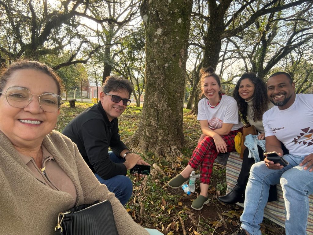 As atividades dessa etapa ocorreram em diferentes espaços de Taquara: sob as árvores do Museu Arqueológico do Rio Grande do Sul (Marsul), na sede administrativa do IPC e em um café local, em encontros marcados por escuta, acolhimento e diálogo. Estiveram presentes Cristiano Oliveira, secretário e carnavalesco do IPC, Vanessa Sanches, coordenadora geral, e Zé Lopes, presidente e também carnavalesco da instituição.