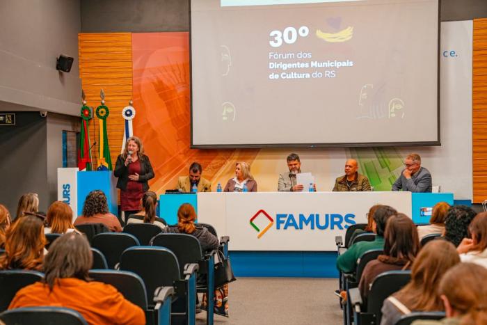 Na última semana, dias 26 e 27 de agosto, aconteceu o 30º Fórum dos Dirigentes Municipais de Cultura do RS, realizado em Porto Alegre. O evento é organizado pela Federação das Associações de Municípios do Rio Grande do Sul (Famurs) em parceria com o Conselho dos Dirigentes Municipais de Cultura do RS (Codic) e debate assuntos pertinentes da pasta da Cultura no Estado. Encerrando a programação do segundo dia, os dirigentes participaram da Assembleia Geral do Codic, que definiu a nova executiva da entidade. A presidência será assumida por Joyce Aline dos Reis, que é diretora do Departamento de Cultura de Rolante (AMPARA).