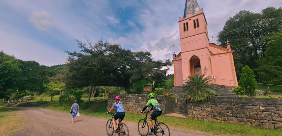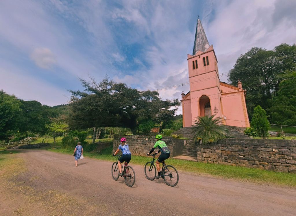 Relação da foto ao tema do concurso: A Ilha Nova é recheada de cenários que preservam a essência da história de Rolante, onde a arquitetura simples e encantadora revela as marcas deixadas pelos imigrantes que ajudaram a construir a cidade. Entre estradas de chão e paisagens verdes, os ciclistas que passam brilham os olhos e, de alguma forma, se conectam com quem ainda vive por lá, representando a continuidade dessa herança viva. Cada pedra, cada detalhe da Ilha Novo, carrega o legado de fé, trabalho e tradição que moldou Rolante e mantém viva a memória dos que a edificaram com esperança.
