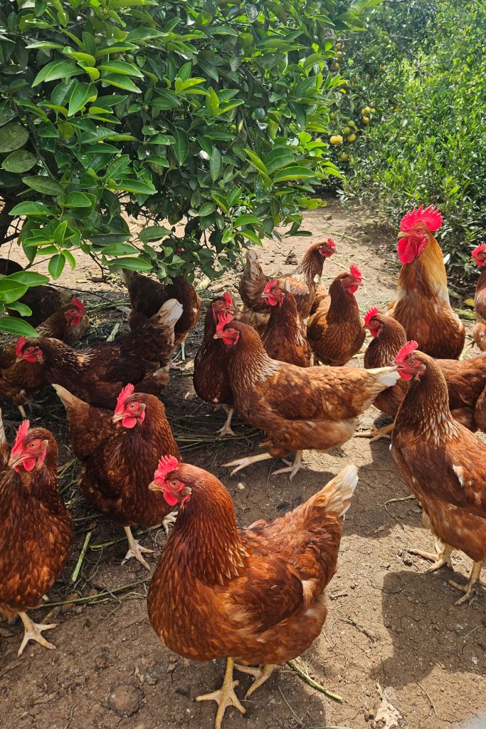 Relação da foto ao tema do concurso: A foto mostra galinhas e galos soltos no galinheiro, que produzem ovos colhidos pelas mãos das pessoas que vivem no local. Os animais são alimentados com milho cultivado pelos próprios moradores, mostrando o cuidado, o trabalho e a ligação da comunidade com a terra. Esta imagem retrata o cotidiano rural e a importância do esforço coletivo para construir e sustentar a vida em Rolante.