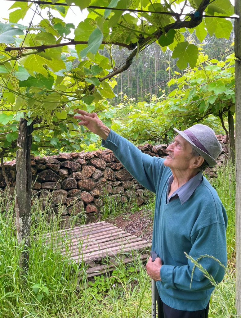 Relação da foto ao tema do concurso: Essa foto fala por si só, demonstra toda uma trajetória de vida dedicada ao cultivo e cuidado com os vinhedos. Meu nono João, hoje com seus 91 anos, continua admirando o que sempre fez de melhor, e eu como neto, me orgulho em ter aprendido muito do que sei hoje com ele, podendo seguir essa cultura que passa de geração por geração.
