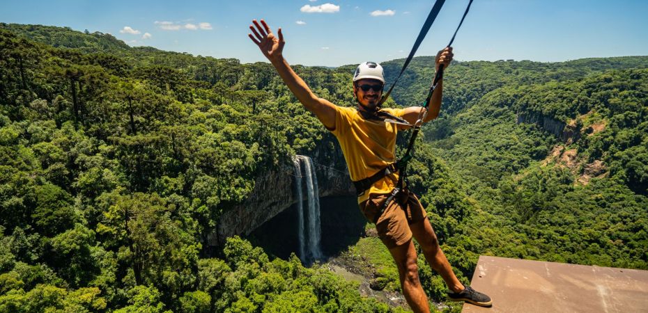 Desde o final de janeiro, o Parque do Caracol, em Canela, conta com uma nova experiência de turismo de aventura contemplativa, e única do tipo no país. O atrativo estava funcionando em formato de soft open desde o dia 18 de dezembro. A atividade chamada de “Corajoso” explora a liberdade ao permitir que os visitantes contemplem a Cascata do Caracol enquanto caminham por uma viga metálica com menos de 1 metro de largura, presos somente pela estrutura superior, sem apoio nas laterais.