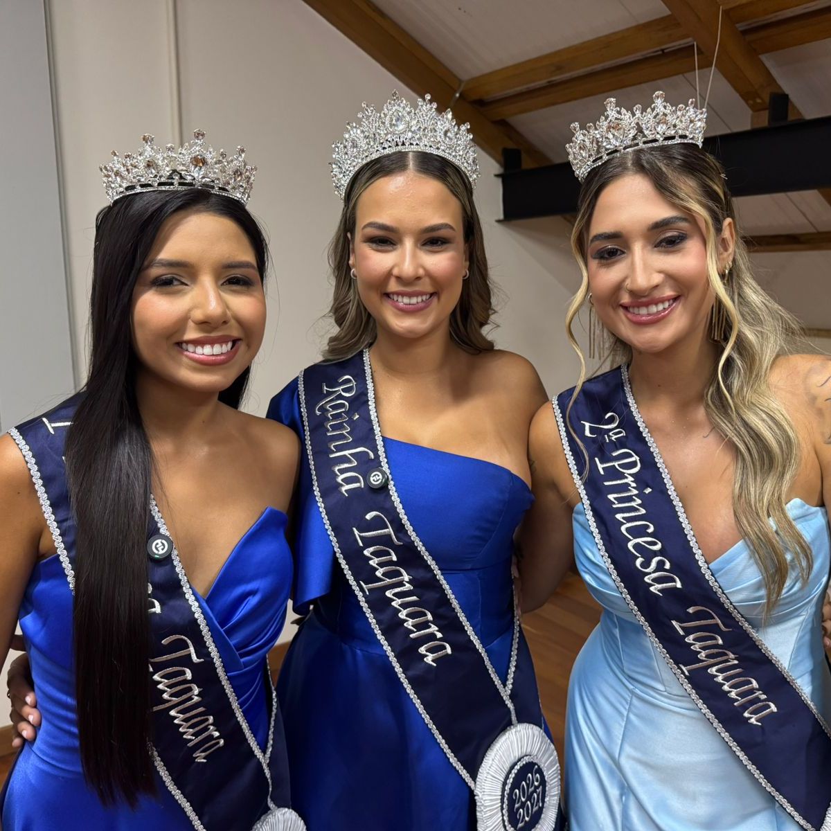 Taquara conheceu neste sábado (28) a nova corte que vai representar o município em eventos oficiais no biênio 2026 – 2027. Em uma noite marcada por emoção, beleza e celebração, foram eleitas as Soberanas de Taquara do ano em que o município comemora 140 anos de emancipação. Em evento realizado no Espaço Cultural Casa Vidal foram escolhidas como rainha Eduarda Bergold da Silva e princesas Manuela da Silva Souza e Nicoly Laís da Silva.