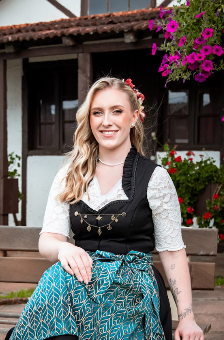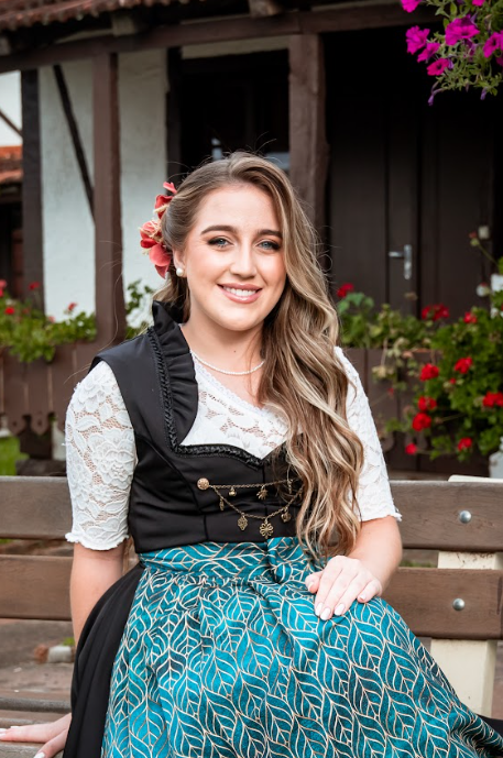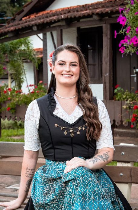 “Cresci vivenciando a essência da Oktoberfest, sempre encantada pelos desfiles germânicos e pelas tradições alemãs que, a cada ano, fizeram meu amor pela festa crescer ainda mais. Com o tempo, esse sentimento também se transformou em admiração e motivação e hoje se tornou um verdadeiro propósito: representar tudo aquilo que valorizo e que me enche de orgulho em nossa comunidade e na nossa Oktoberfest.