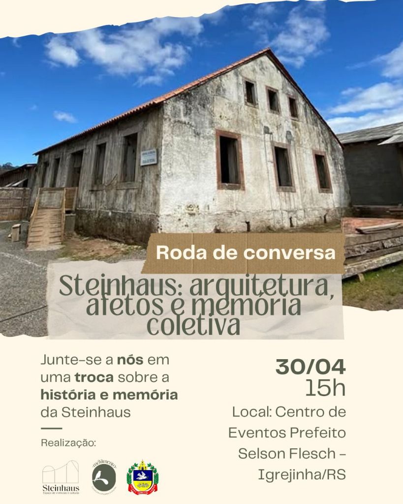 A história de um dos patrimônios mais simbólicos de Igrejinha será tema de um encontro especial nesta semana. Na quinta-feira (30), das 15h às 17h, no Centro de Eventos Prefeito Selson Flesch, acontece a roda de conversa “Steinhaus: arquitetura, afetos e memória coletiva”.