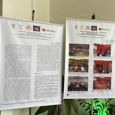 Banners com informações sobre o Quilombo do Paredão são expostos no saguão da Prefeitura de Taquara