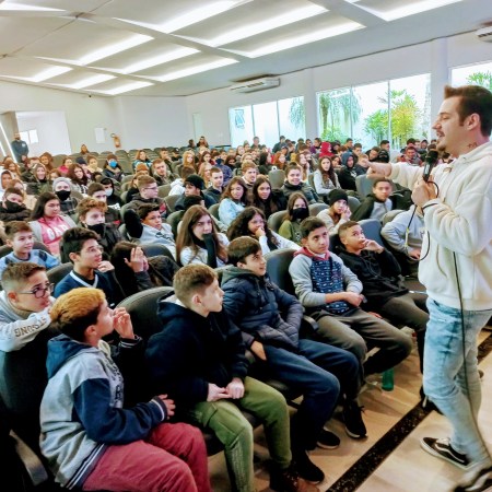 Escritor Pedro Guerra falou para os adolescentes na Feira Literária de Taquara