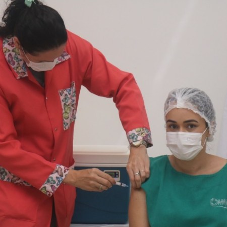 Enfermeira e voluntária da Oktober foi a primeira vacinada contra a Covid em Igrejinha: “recarga de energia para continuar”
